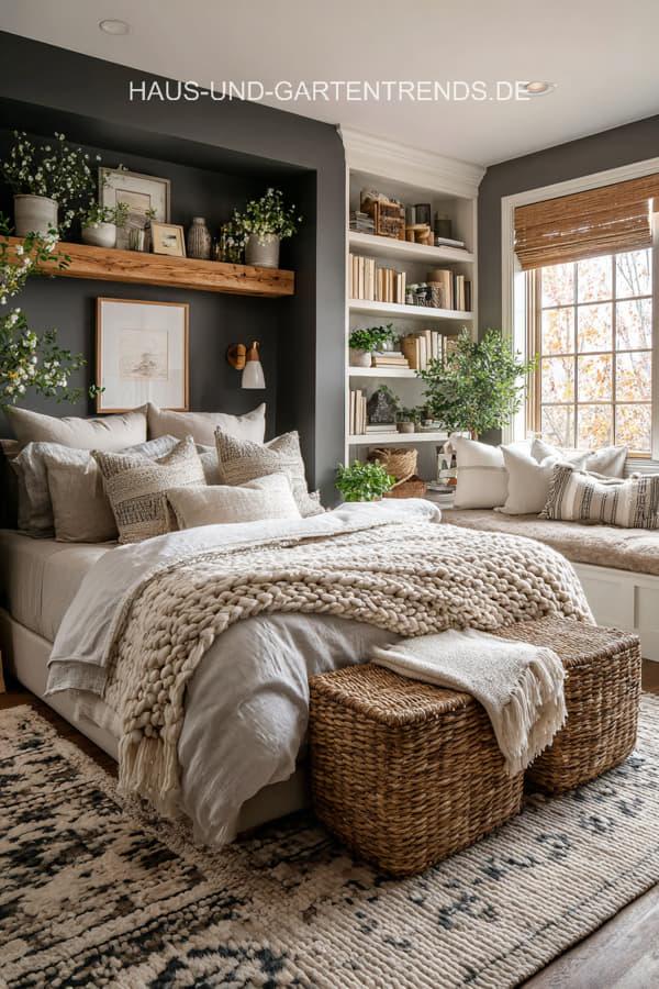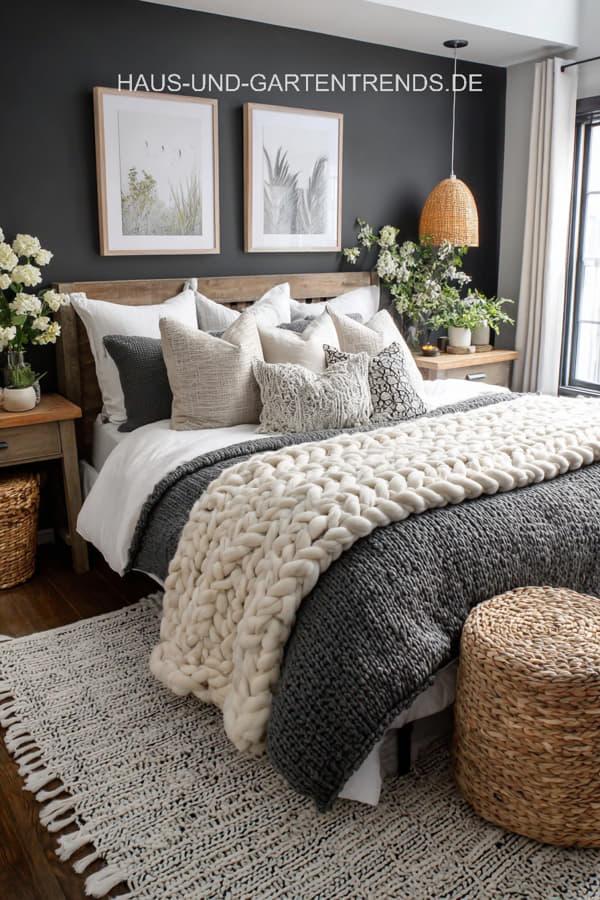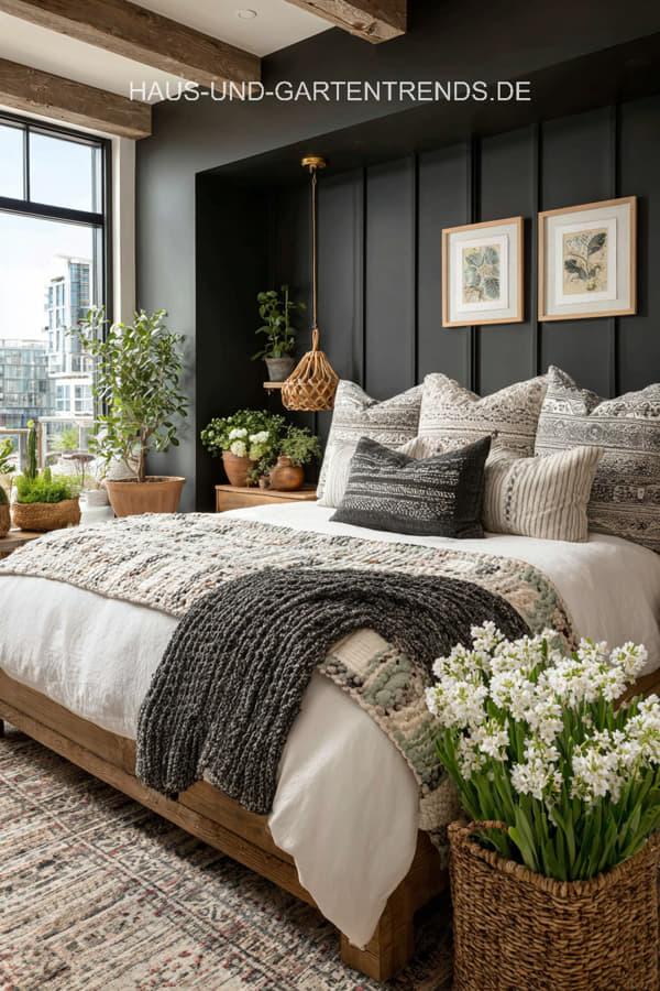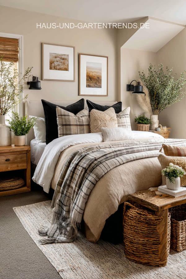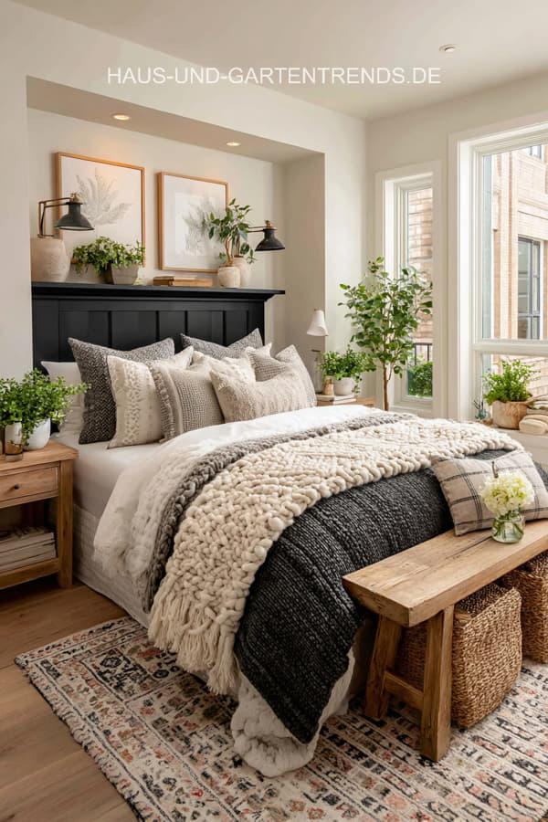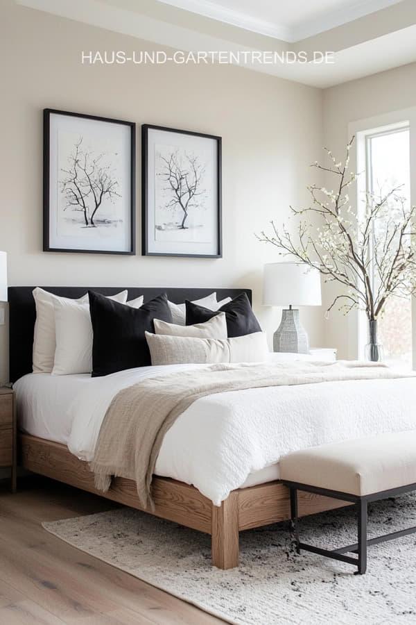 Entdecke mehr als 20 stilvolle Schlafzimmer-Ideen in Neutralfarben und Schwarz, die Ruhe, Eleganz und modernes Design vereinen. Von warmen Beigetönen, Creme und Grau bis hin zu klaren schwarzen Akzenten zeigen diese Inspirationen, wie ein harmonisches und zugleich ausdrucksstarkes Schlafzimmer entsteht. Natürliche Materialien wie Holz, Leinen und Bouclé, weiche Textilien und dezente Kontraste sorgen für eine gemütliche Atmosphäre mit hochwertigem Look.