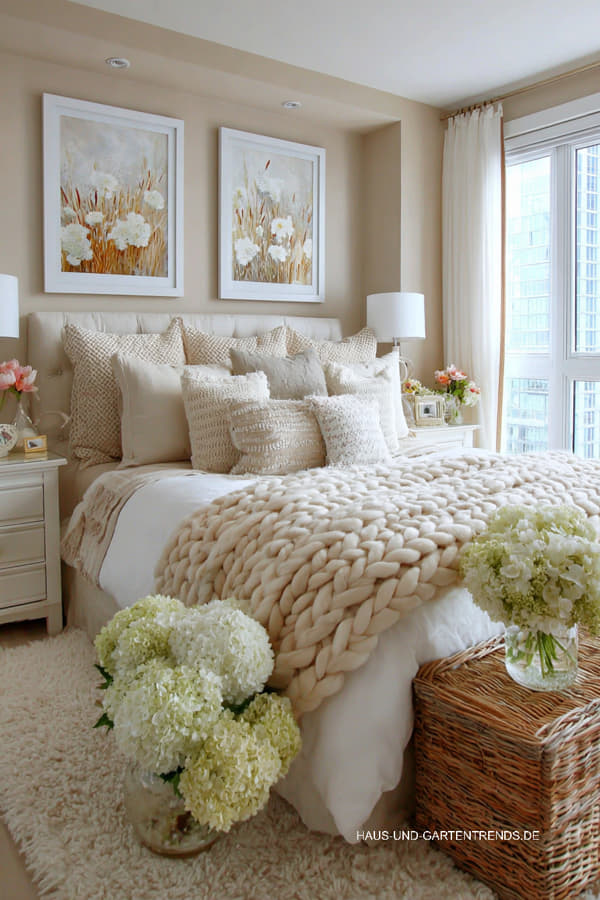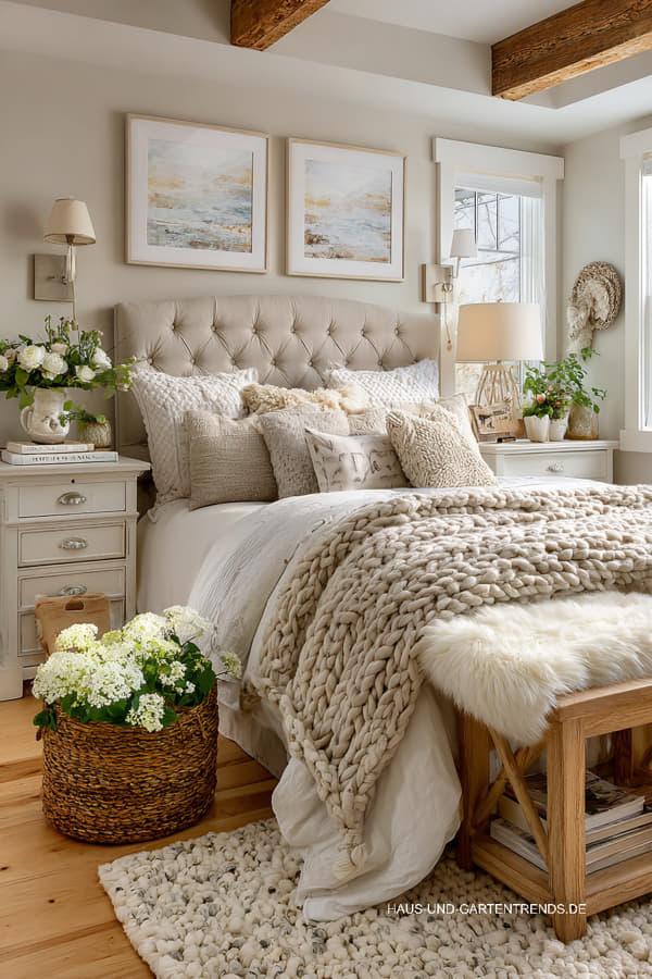Entdecke über 30+moderne Schlafzimmer-Ideen in den edelneutralen Farben Beige & Weiß, die zeitlose Eleganz mit wohltuender Ruhe verbinden. Die harmonische Farbpalette aus warmen Beigetönen und klarem Weiß schafft eine entspannte Atmosphäre – perfekt für Fans von Modern Living, Scandi-Design, Japandi oder einem luxuriösen Hotel-Look oder einfach für alle, die ihr Schlafzimmer modern und gleichzeitig gemütlich gestalten möchten.