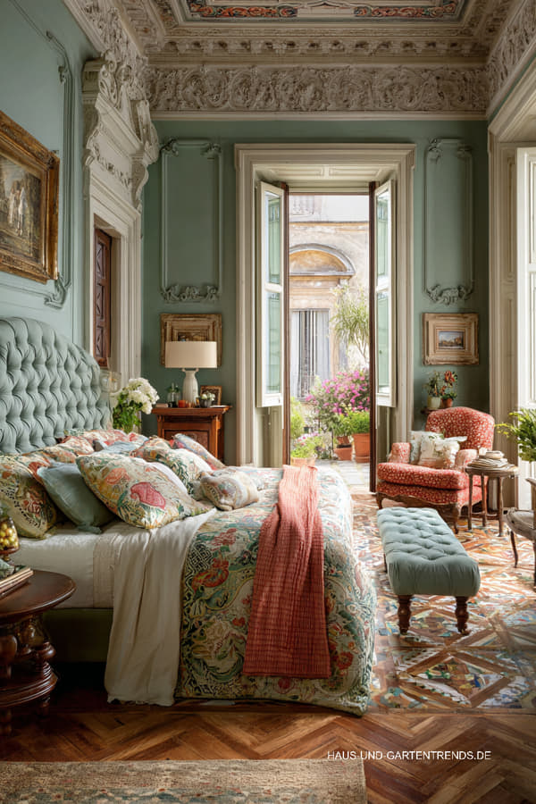 Italienische Schlafzimmer stehen für Eleganz, hochwertige Materialien und zeitlosen Luxus. In diesem Artikel findest du 20+ Schlafzimmer Ideen à la Bella Italia, die stilvolle Formen, edle Stoffe und eine ruhige, luxuriöse Atmosphäre vereinen. Charakteristisch für diesen Stil sind harmonische Farbpaletten, hochwertige Holzmöbel, elegante Textilien sowie feine Details, die den Raum edel wirken lassen.
