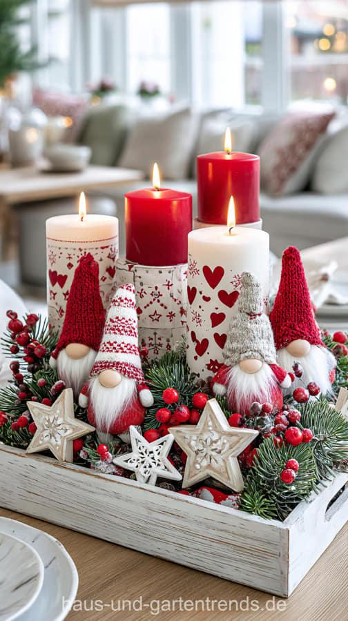 Adventskranz mit Weihnachts-Figuren – Zwerge und Elche
