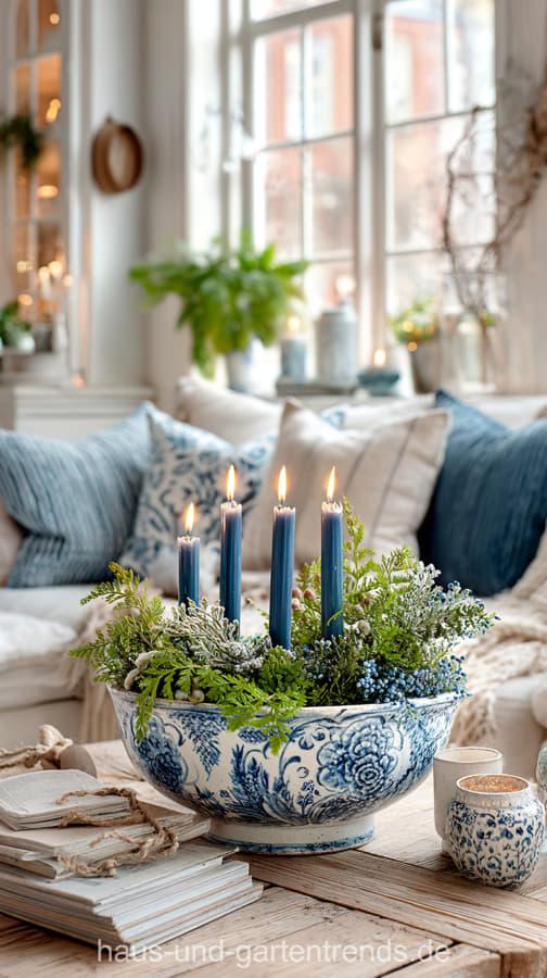 Adventskranz in frostigem Blau