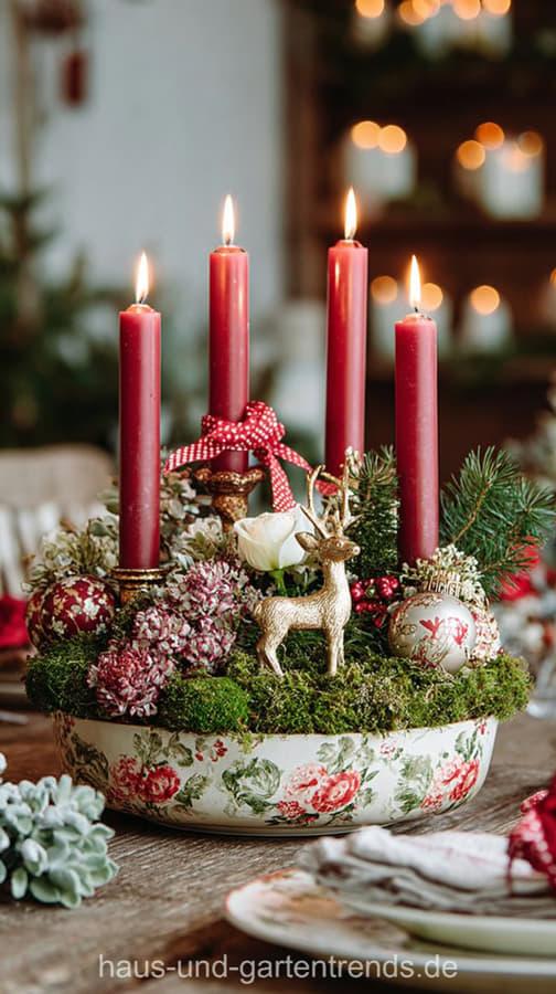 Entdecke die zauberhafte Welt der Adventskränze und lass dich inspirieren für eine besinnliche und stylische Weihnachtszeit! Egal, ob du einen klassischen Adventskranz mit Tannenzweigen und roten Kerzen liebst, einen modernen und minimalistischen Look bevorzugst oder auf den trendigen Boho-Stil mit natürlichen Materialien und warmen Erdtönen stehst – hier ist für alle etwas dabei! (Hinweis: Die gezeigten Bilder wurden mit KI erstellt. Bitte achte bei echten Kerzen auf ausreichend Abstand zu brennbaren Materialien, lasse sie nie unbeaufsichtigt oder verwende alternativ LED-Kerzen bzw. Kerzen im Glas.)