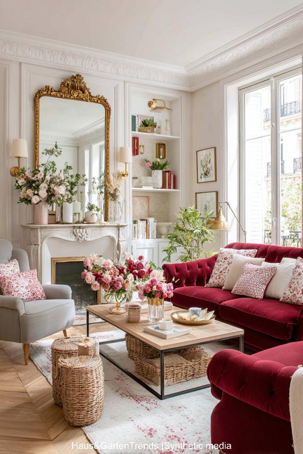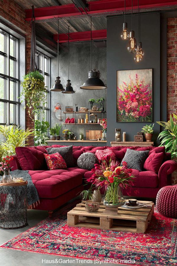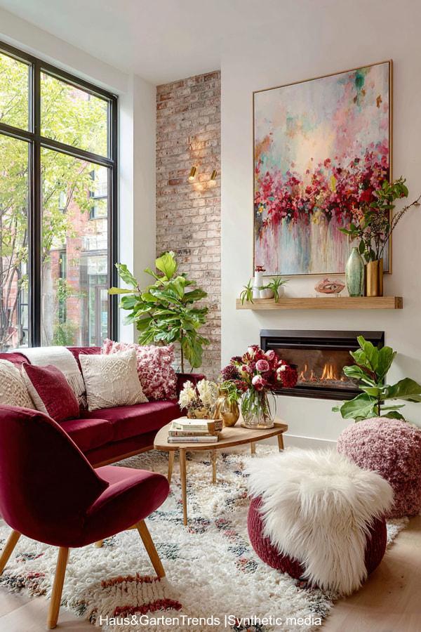 In den letzten Jahren erlebt die Farbe ein starkes Revival in der Innenarchitektur. Interior-Designer setzen sie gezielt ein – als Akzentwand, als Polsterfarbe für ein Statement-Sofa oder als atmosphärischer Hintergrund für eine kuratierte Kunstsammlung. Das Besondere an Burgund: Es ist eine Farbe, die Räume nicht kleiner wirken lässt, sondern ihnen Tiefe und Seele gibt. In Kombination mit Gold, Naturholz, Messing oder samtigem Grün entfaltet sie ein luxuriöses Spiel aus Kontrast und Harmonie. Ob klassisch-elegant, modern-minimalistisch oder wild-böhmisch – die folgenden Einrichtungsideen zeigen, wie vielseitig Burgund im Wohnzimmer eingesetzt werden kann.
