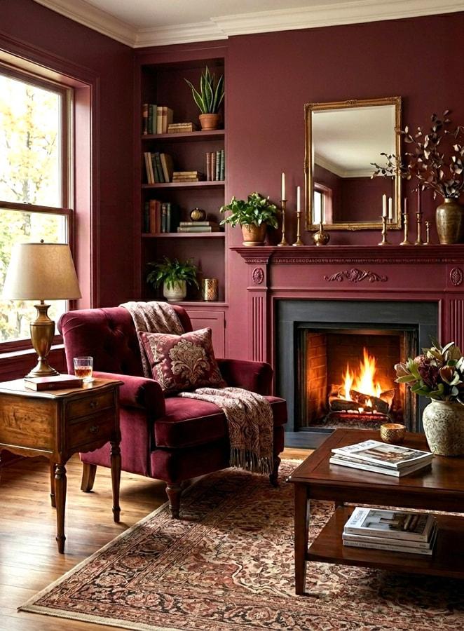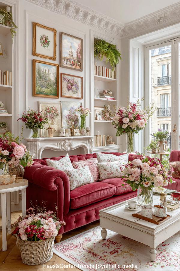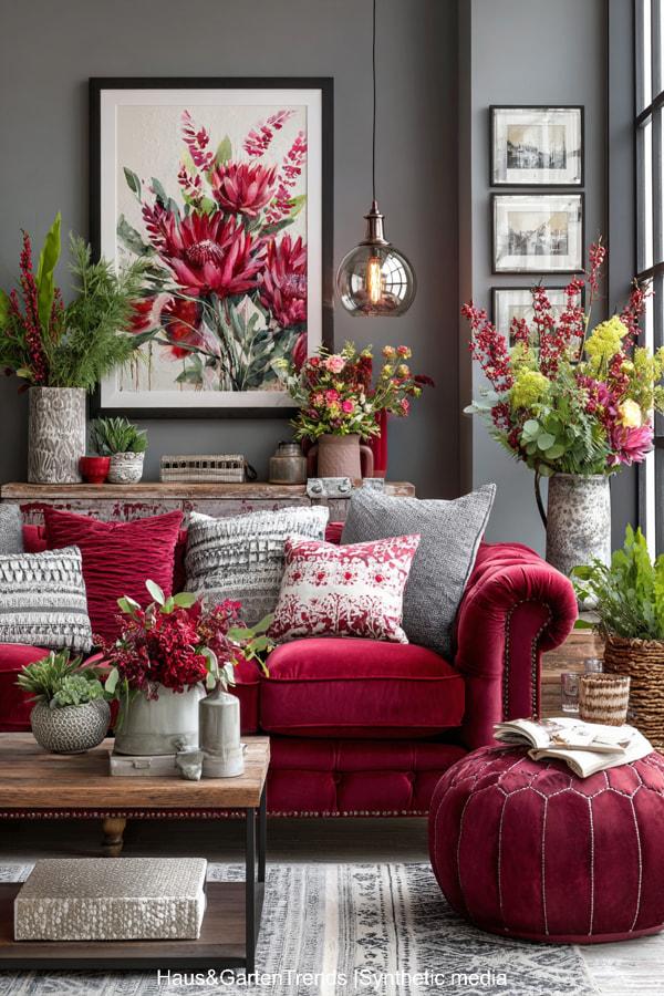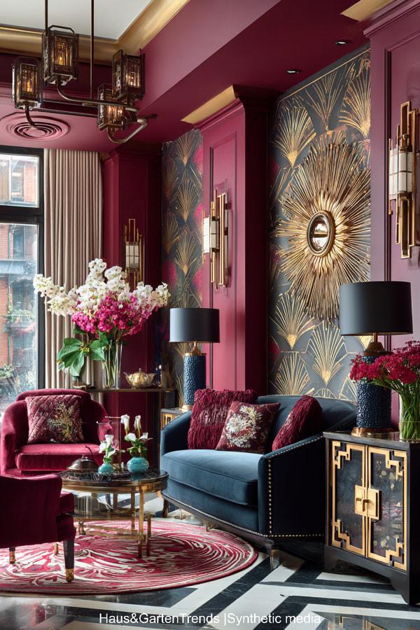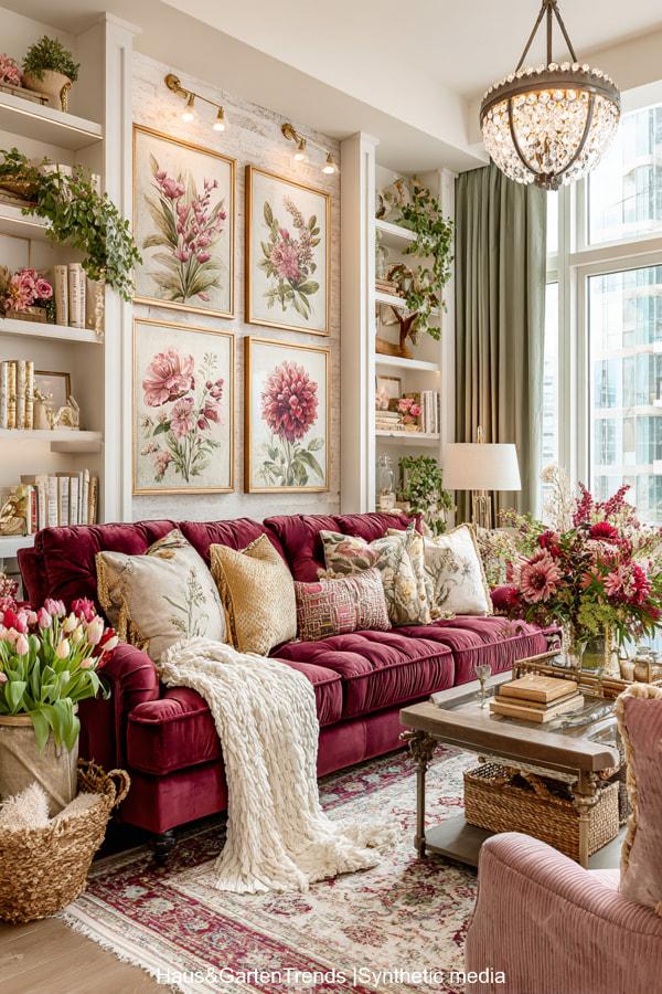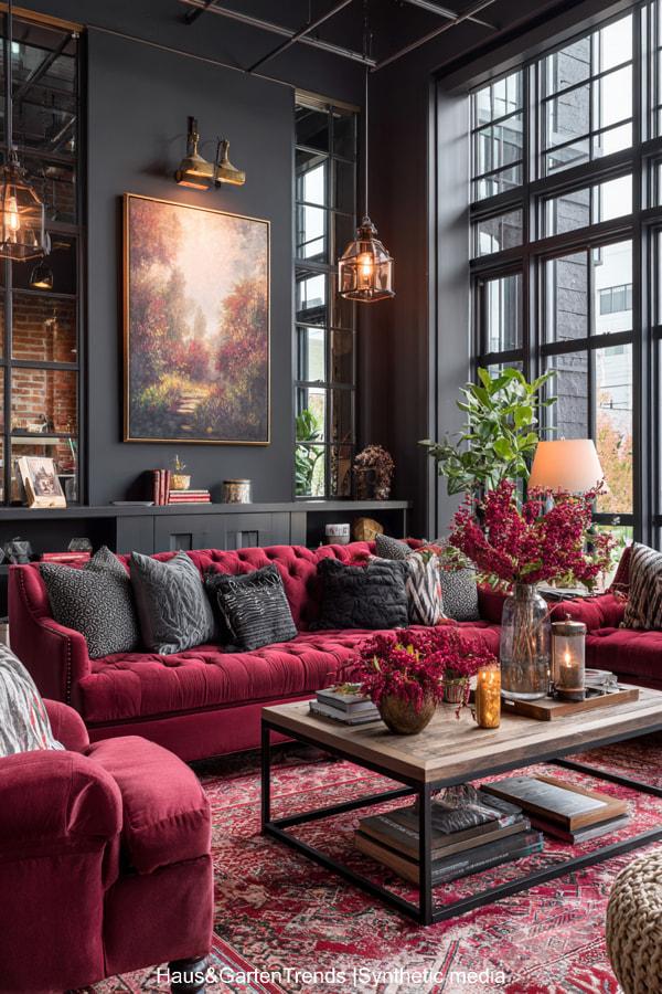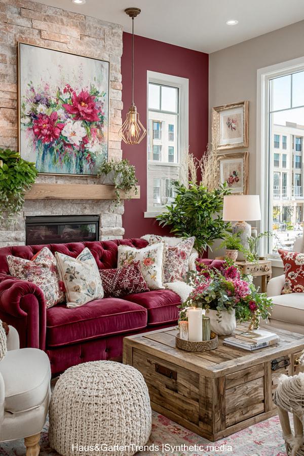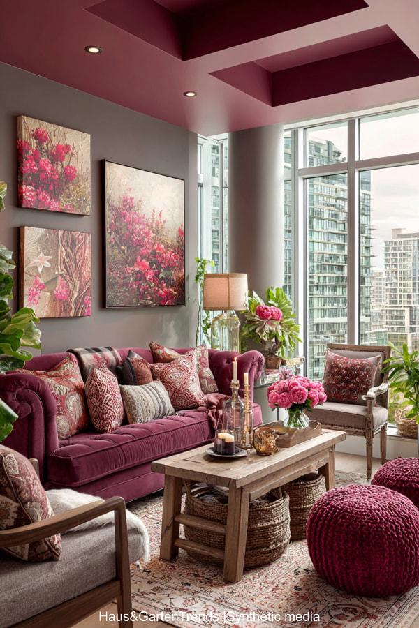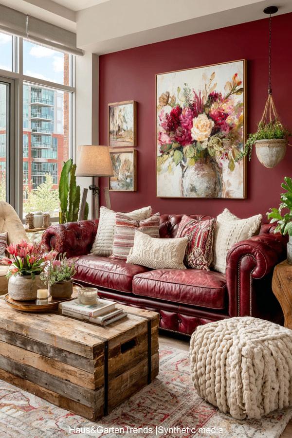 8. Düsterer Burgund-Maximalismus – Das Wohnzimmer als Kunstgalerie