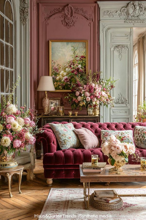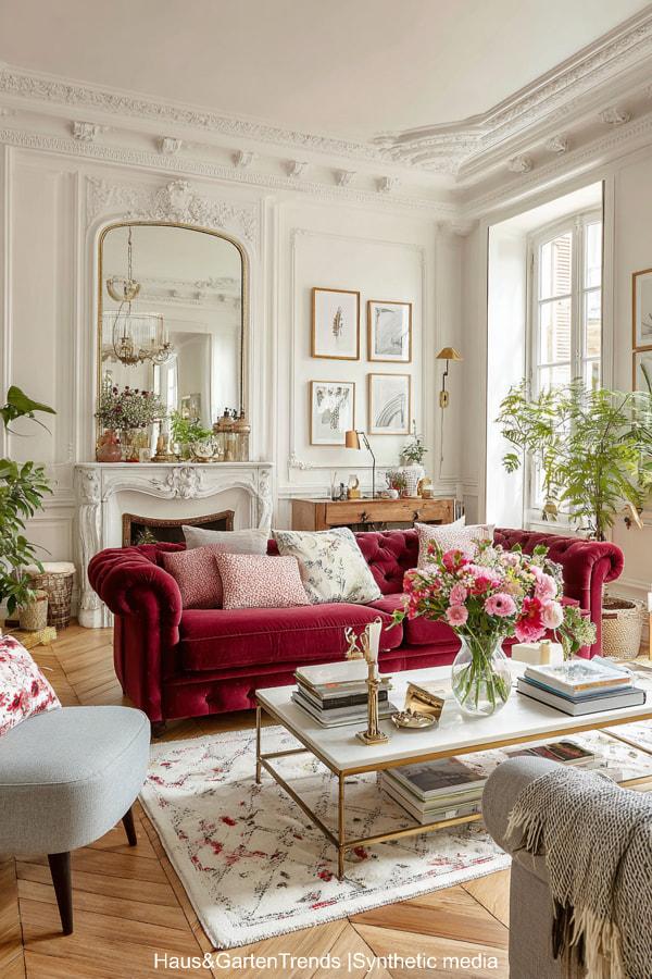 1. Samtsofa-Eleganz – Klassischer Luxus mit Burgund-Couch