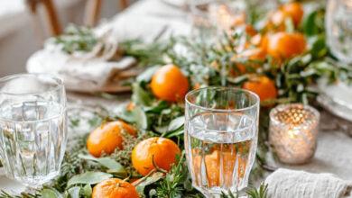 1. Grün-Gold Weihnachtliche Tischdeko 2. Girlande aus Naturmaterialien: Zapfen, Tannenzweige, getrocknete Orangenscheiben oder Beeren 3. Rosmarin und Mandarinen 4. Weihnachtliche…
