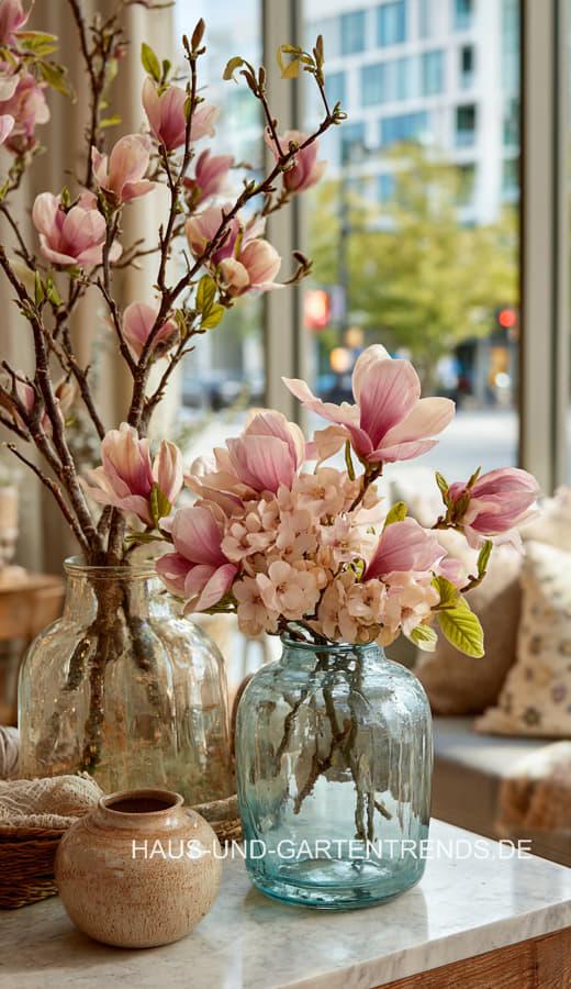 Wenn der Winter langsam nachlässt und die ersten warmen Sonnenstrahlen auf sich warten lassen, beginnt die schönste Zeit für frische Blumenarrangements. Gerade Februar und März eignen sich perfekt, um mit zauberhaften Frühblühern Farbe, Duft und neue Energie ins Zuhause zu bringen. Hyazinthen, Narzissen, Schneeglöckchen, Tulpen, Ranunkeln, Anemonen und sogar blühende Magnolienzweige und Kirschpflaumen-Bäume entfalten jetzt ihre ganze Pracht und eröffnen unzählige Möglichkeiten für natürliche, stilvolle Dekoideen. Ob zarte Pastelltöne, leuchtende Farbhighlights oder elegante Zweigkompositionen – diese Blumen kündigen den Frühling an und verwandeln jeden Raum in eine kleine, blühende Oase.