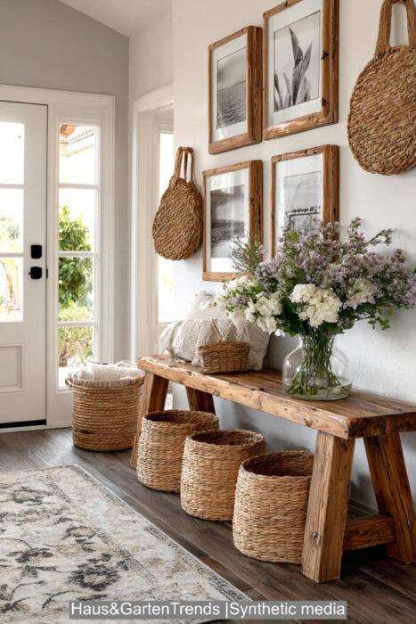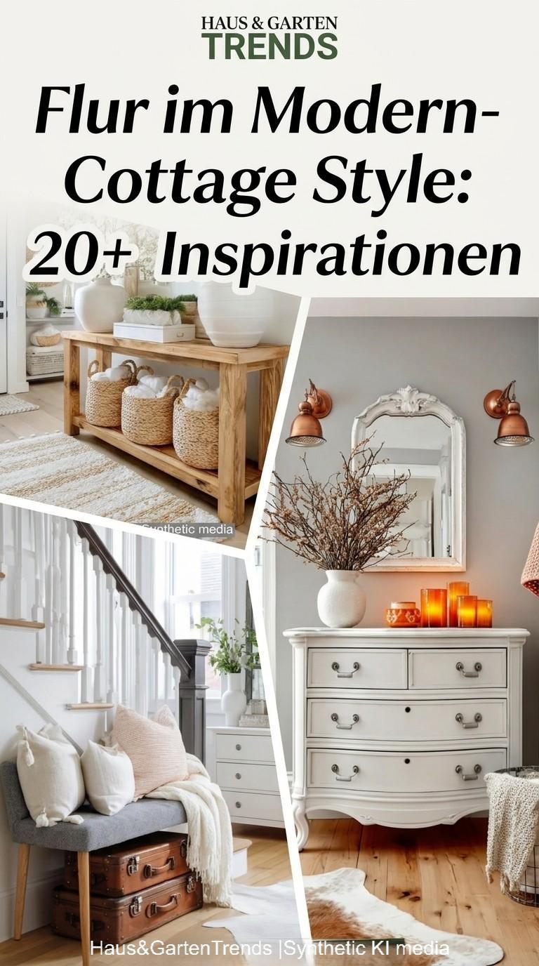 Verwandle deinen Eingangsbereich in einen stilvollen, authentischen Landhaus-Flur voller Charme und Persönlichkeit. Diese 20+ Ideen kombinieren rustikale Materialien, sanfte Farbtöne und nostalgische Details zu einem harmonischen Gesamtbild. Entdecke charmante Konsolentische aus Holz, geflochtene Körbe, romantische Spiegel, vintage Garderobenhaken und liebevolle Dekorationen, die sofort ein Gefühl von Zuhause schaffen. Ideal für alle, die ihren Flur in einen warmen, stilvollen Empfangsbereich mit ländlicher Eleganz verwandeln möchten.
