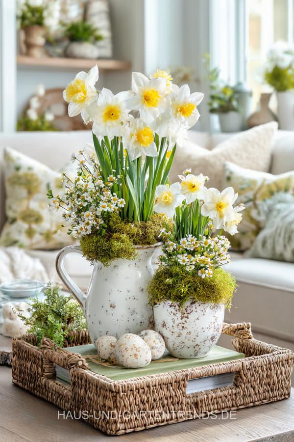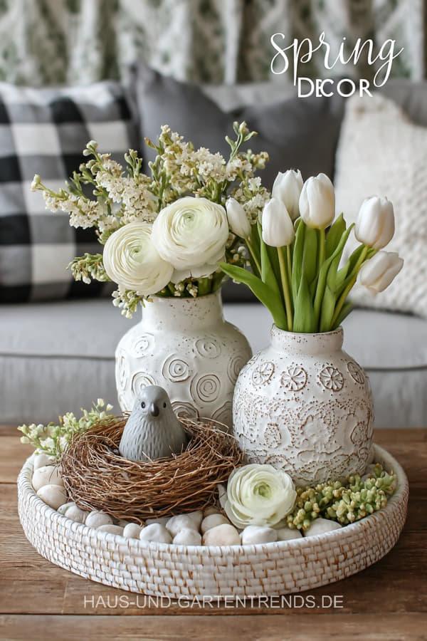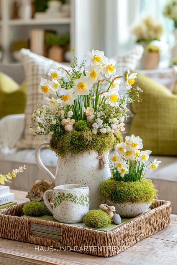 Entdecke über 30 frische, stilvoll arrangierte Ideen, wie du ein Tablett in eine strahlende Frühlingsdeko verwandelst. Von natürlichen Kombinationen mit Moos, Hyazinthen und Zweigen, über schlichte skandinavische Arrangements, bis hin zu romantischen Kerzen-Sets, pastelligen Akzenten und dekorativen Mini-Vasen – hier findest du kreative Looks für Wohnzimmer, Küche, Flur oder Esstisch.