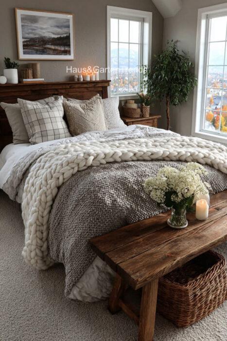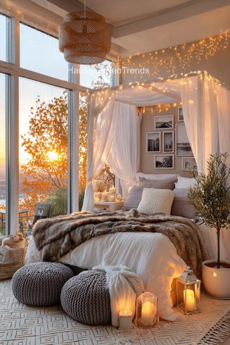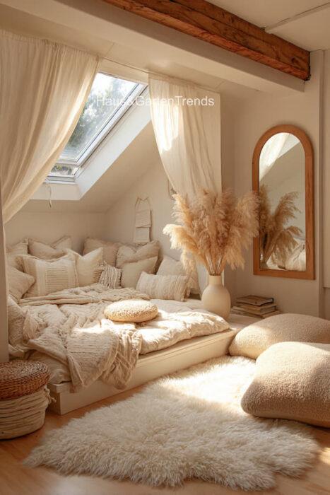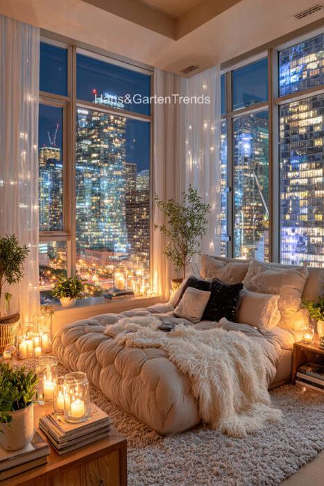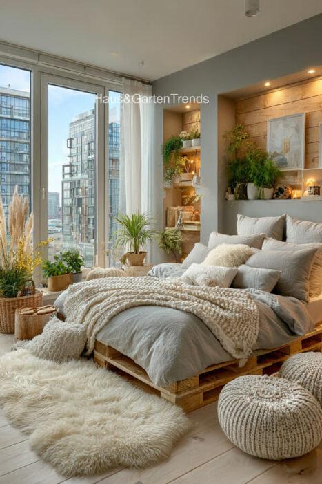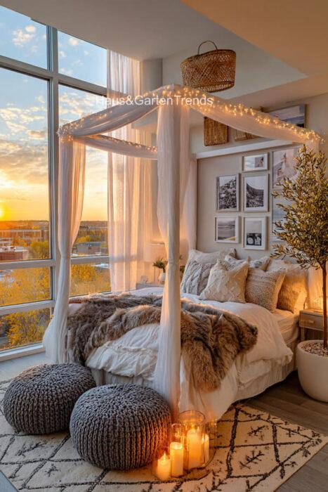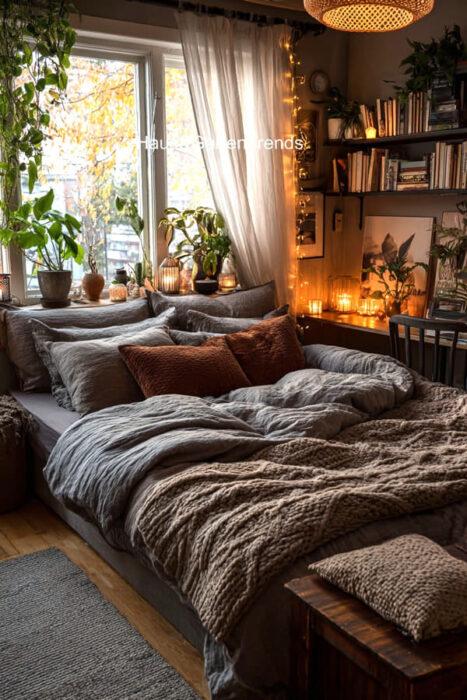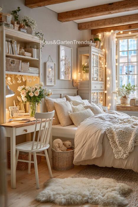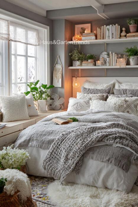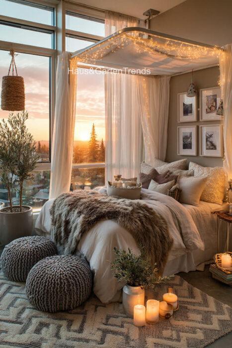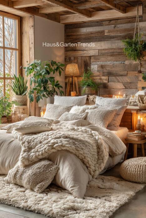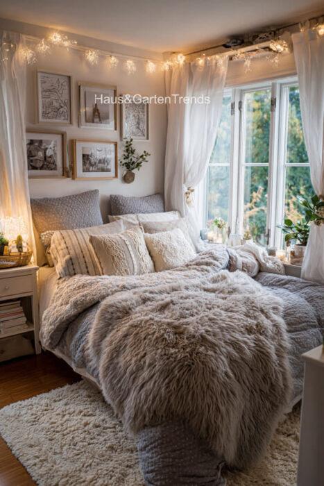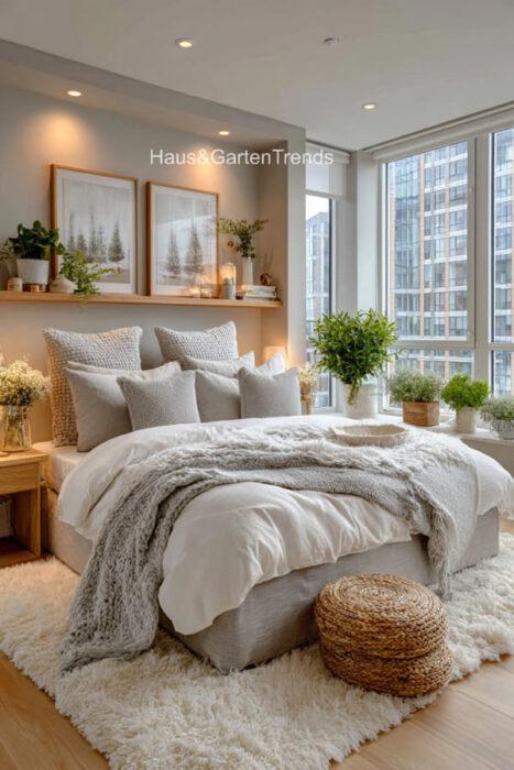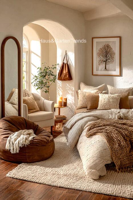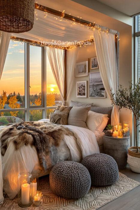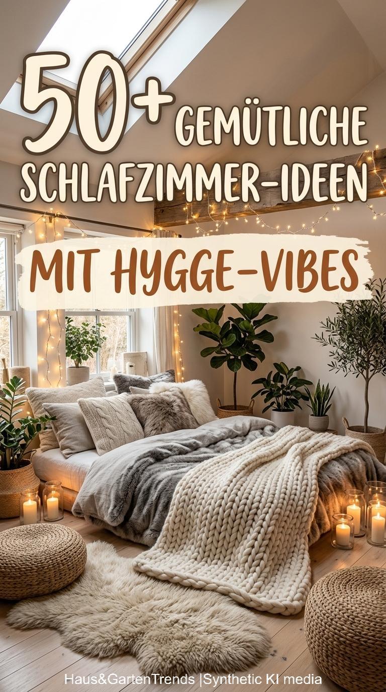 Verwandle dein Schlafzimmer in einer ultimativen Cozy-Zone! Dieser Artikel zeigt dir mehr als 50 gemütlichen Schlafzimmer Ideen voller unwiderstehlich kuscheliger Details, warmer Lichtstimmungen und seelenruhiger Farbwelten, die sofort ein Gefühl von Geborgenheit auslösen. Entdecke fluffige Bett-Layerings, sanfte Beige-, Creme- und Naturtöne, weiche Teppiche, stimmungsvolle Lampen, minimalistische Deko-Tricks und kleine Veränderungen mit riesiger Wirkung – perfekt, um aus jedem Raum einen warmen, beruhigenden Rückzugsort mit echten Hygge-Vibes zu machen.