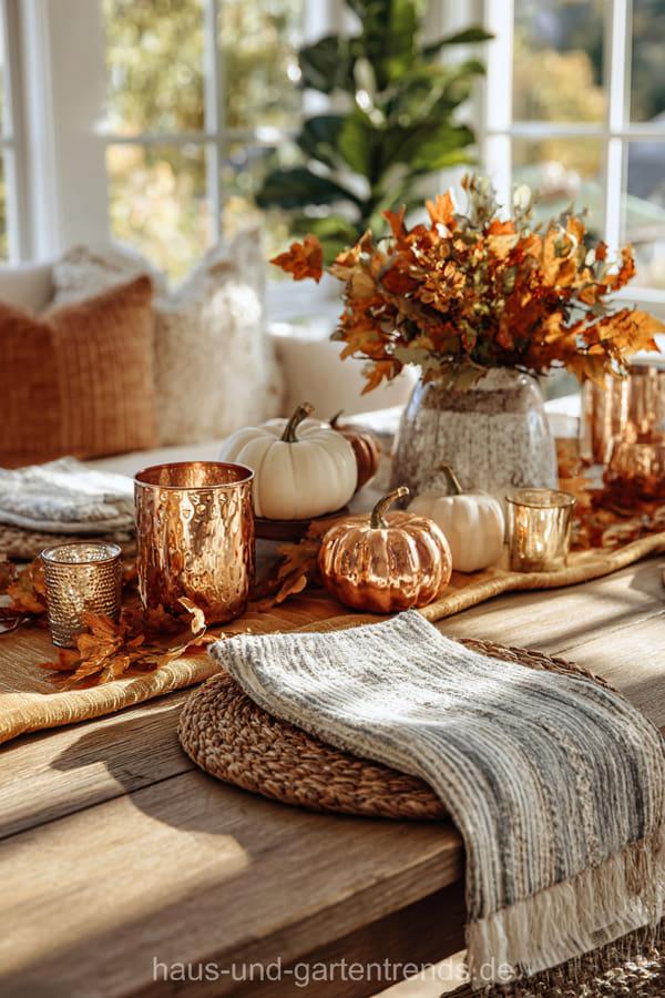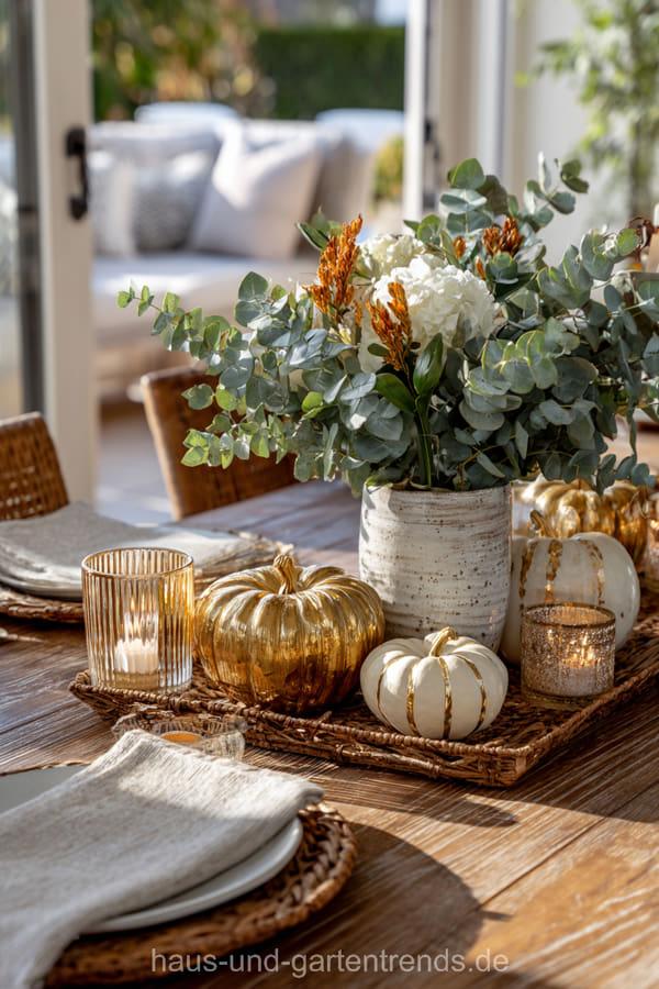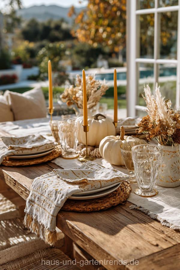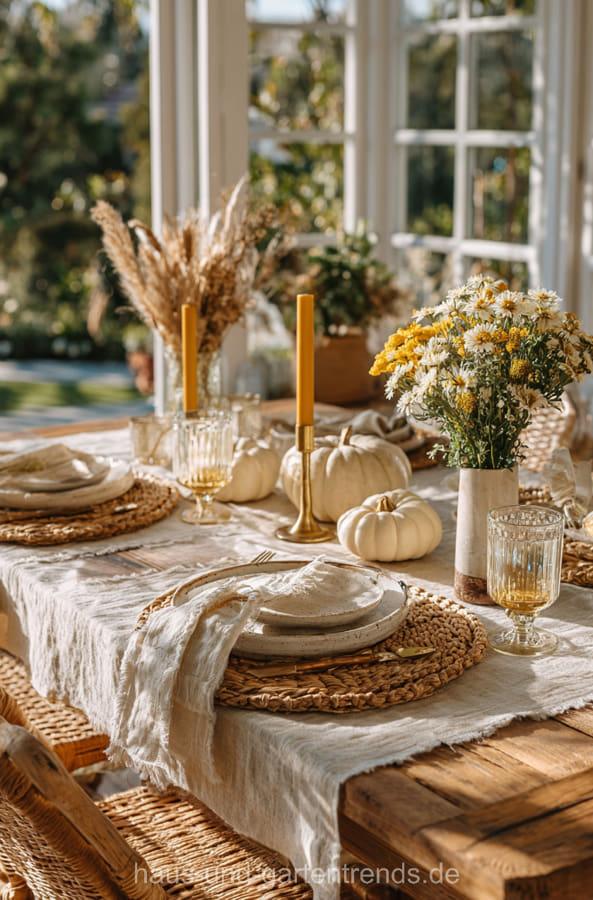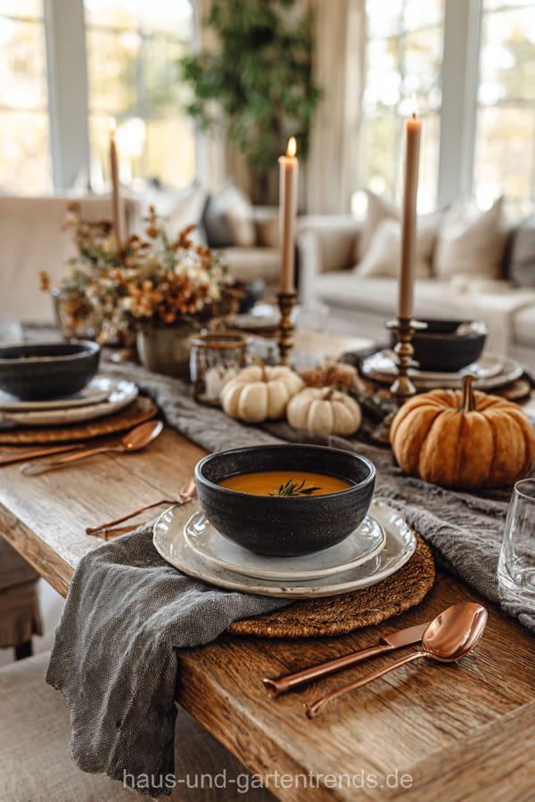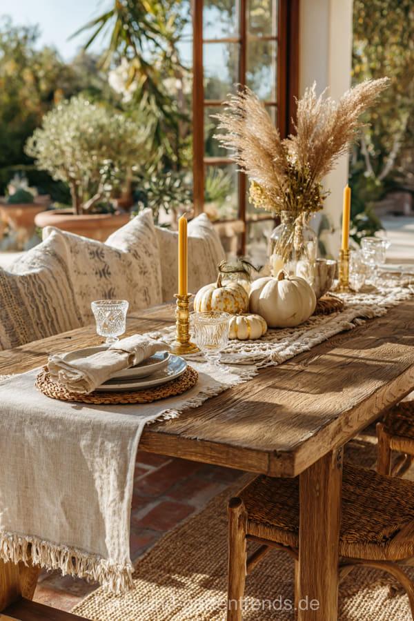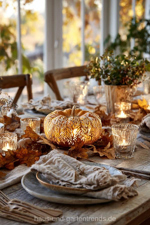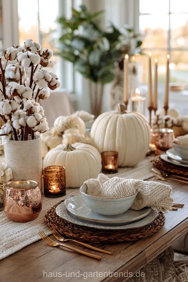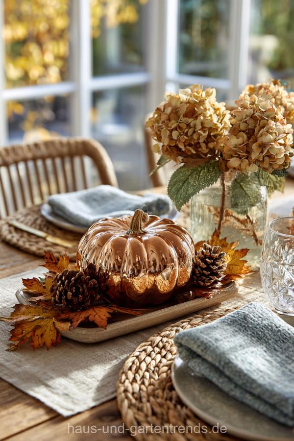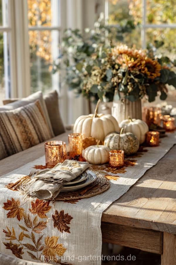 Tauche ein in über 80 Herbstdeko-Ideen, die dein Esszimmer in eine warme Wohlfühl-Oase verwandeln. Rustikale Materialien wie Holz, Kürbisse und Trockenblumen schaffen natürliche Gemütlichkeit. Für Liebhaber eleganter Looks gibt es Inspiration mit goldenen Akzenten, edlem Geschirr und stilvollen Kerzenarrangements. So gelingt dir eine herbstliche Atmosphäre, die Gäste und Familie gleichermaßen begeistert.