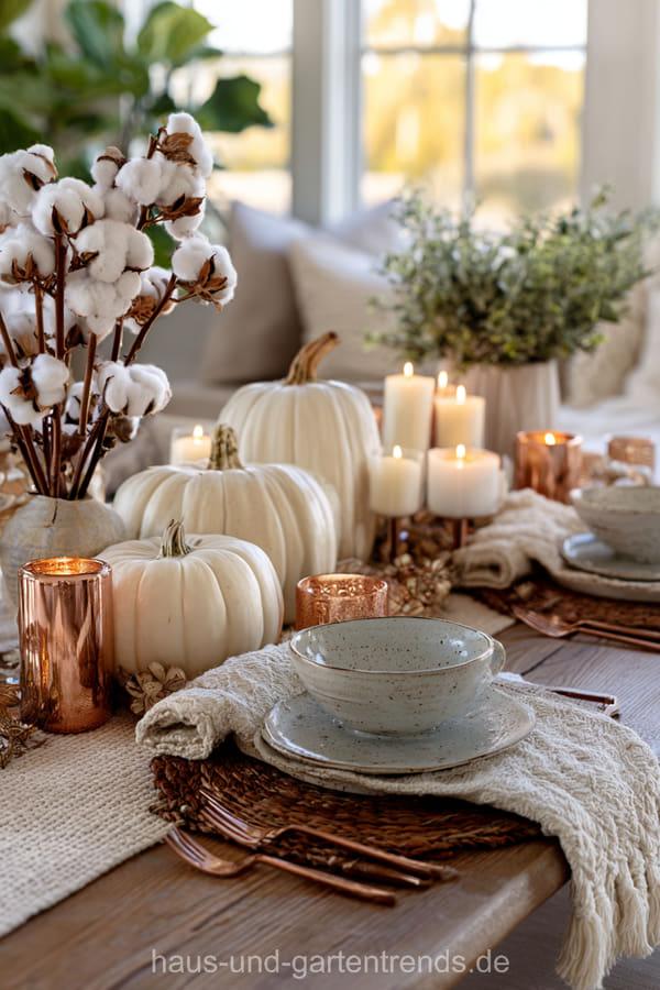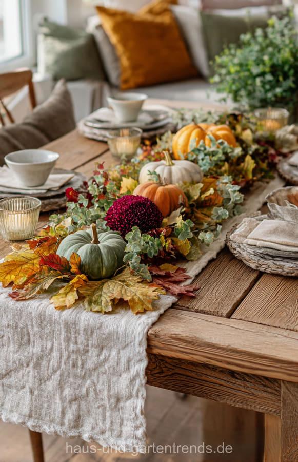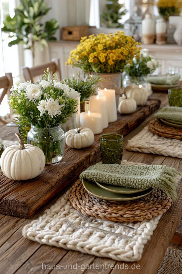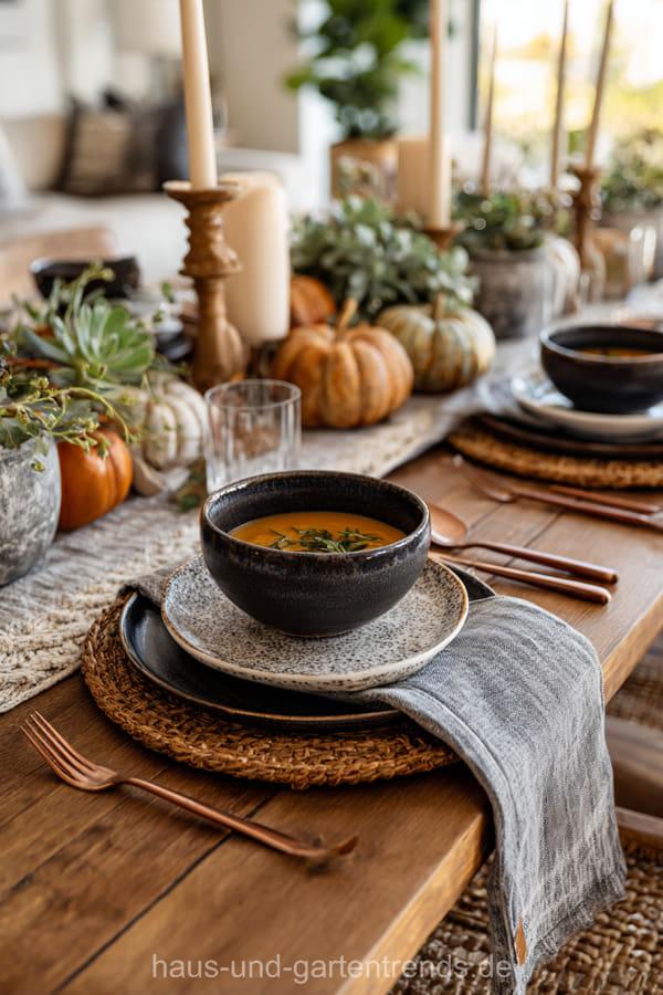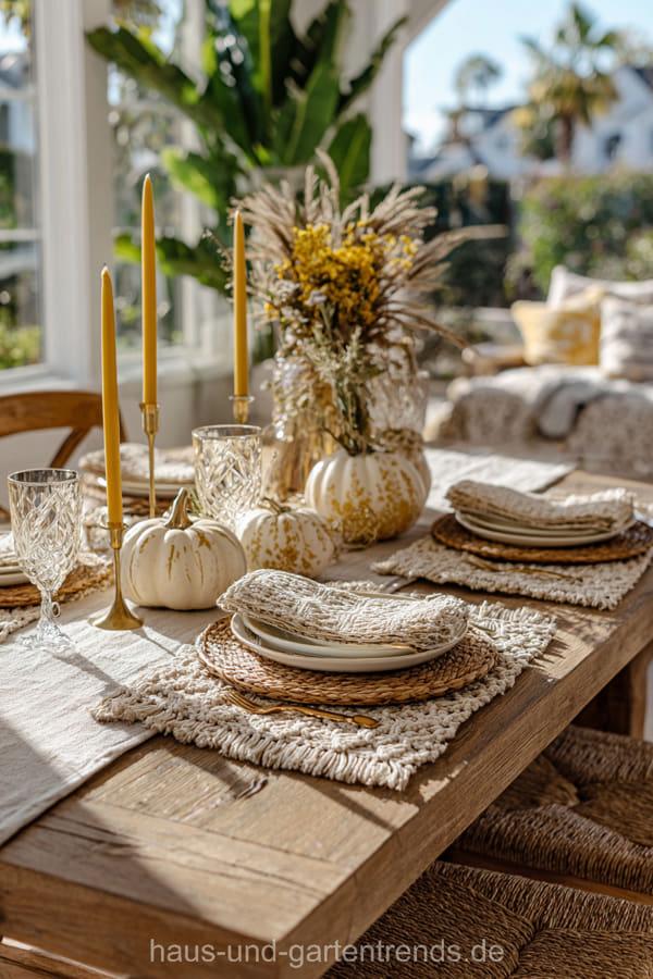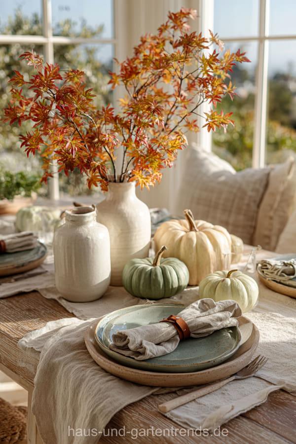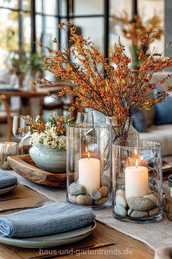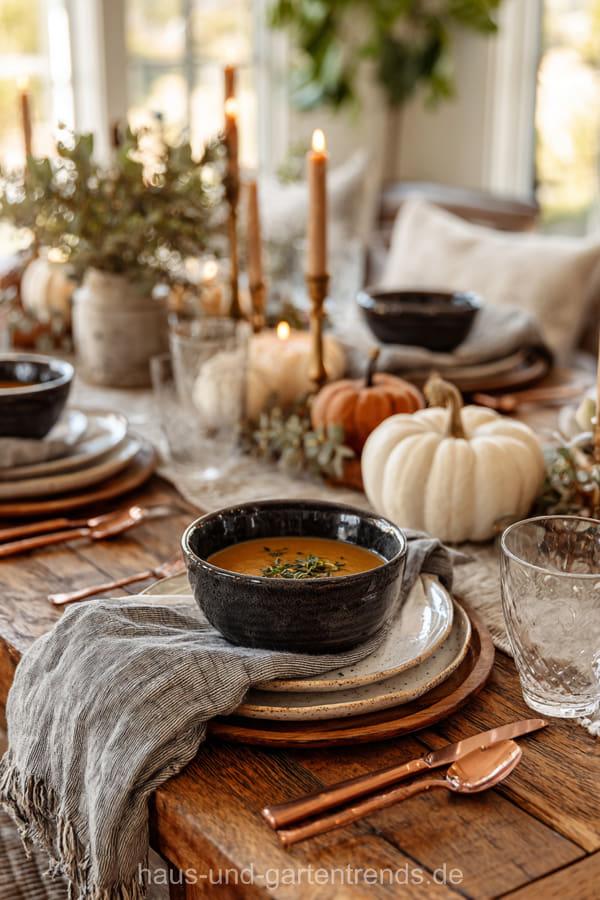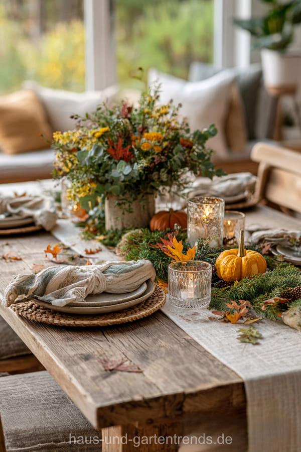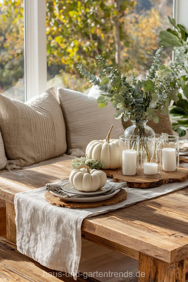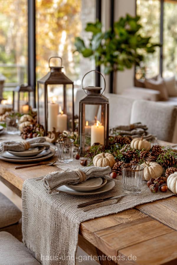 Tauche ein in über 80 Herbstdeko-Ideen, die dein Esszimmer in eine warme Wohlfühl-Oase verwandeln. Rustikale Materialien wie Holz, Kürbisse und Trockenblumen schaffen natürliche Gemütlichkeit. Für Liebhaber eleganter Looks gibt es Inspiration mit goldenen Akzenten, edlem Geschirr und stilvollen Kerzenarrangements. So gelingt dir eine herbstliche Atmosphäre, die Gäste und Familie gleichermaßen begeistert.
