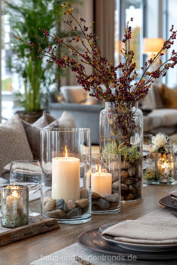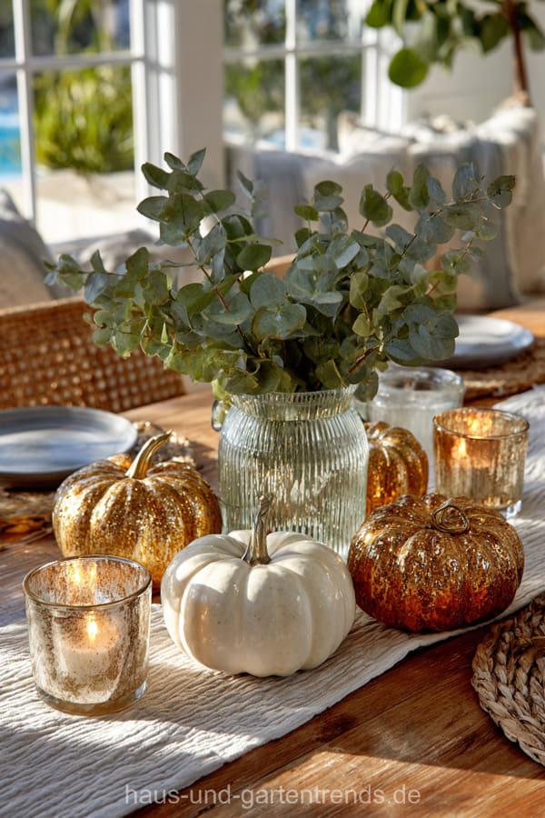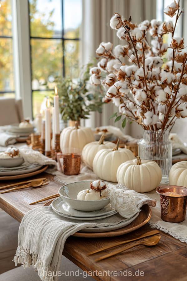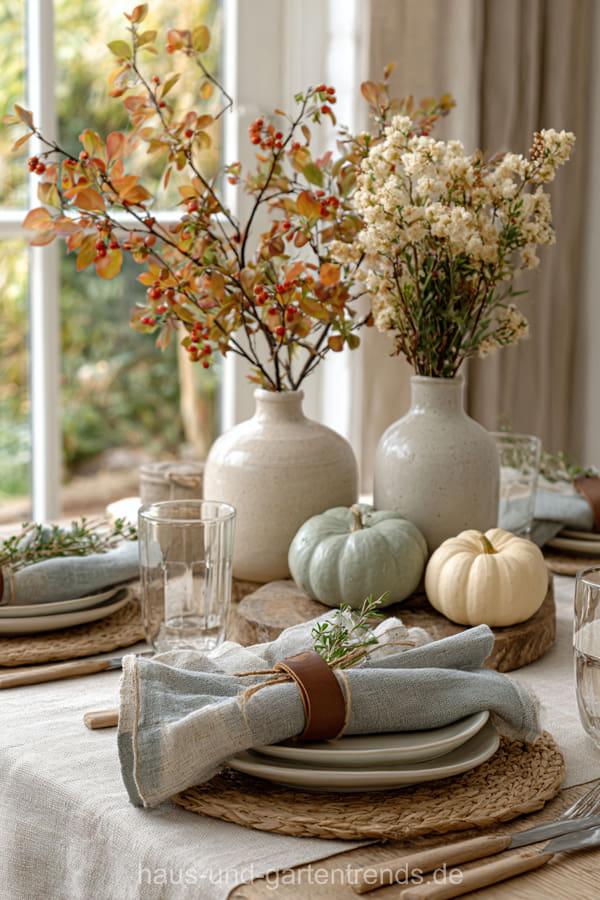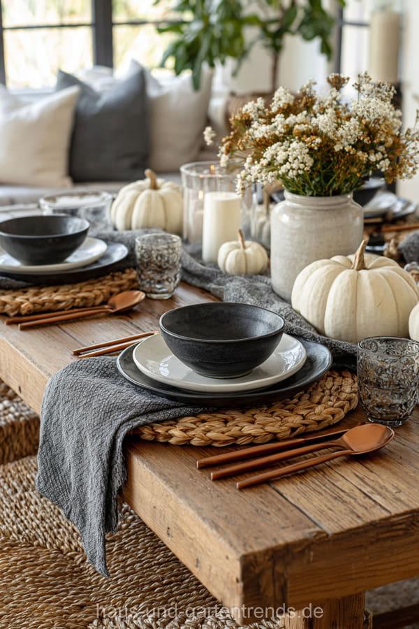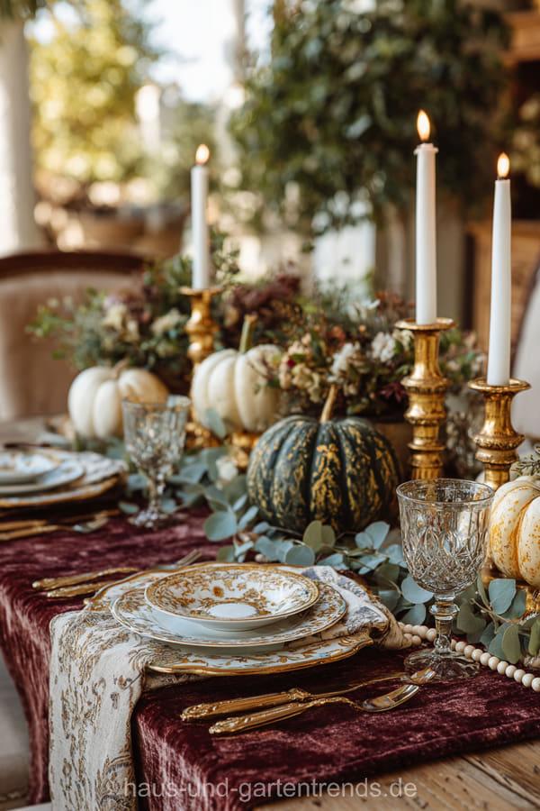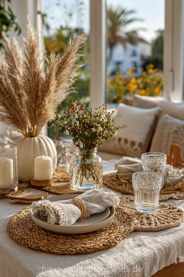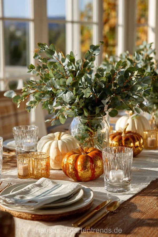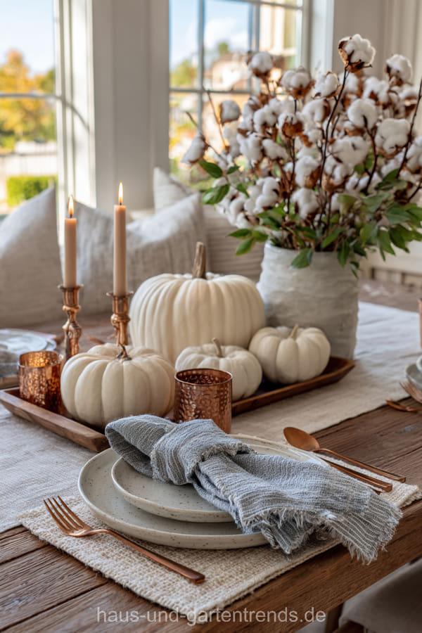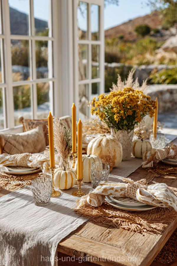 Tauche ein in über 80 Herbstdeko-Ideen, die dein Esszimmer in eine warme Wohlfühl-Oase verwandeln. Rustikale Materialien wie Holz, Kürbisse und Trockenblumen schaffen natürliche Gemütlichkeit. Für Liebhaber eleganter Looks gibt es Inspiration mit goldenen Akzenten, edlem Geschirr und stilvollen Kerzenarrangements. So gelingt dir eine herbstliche Atmosphäre, die Gäste und Familie gleichermaßen begeistert.
