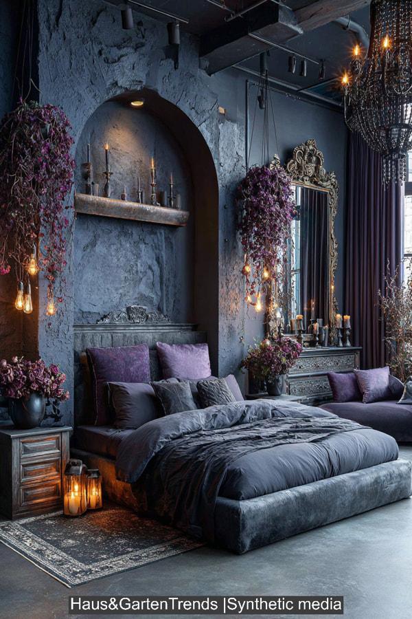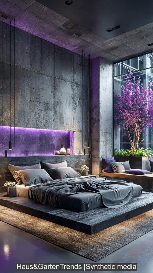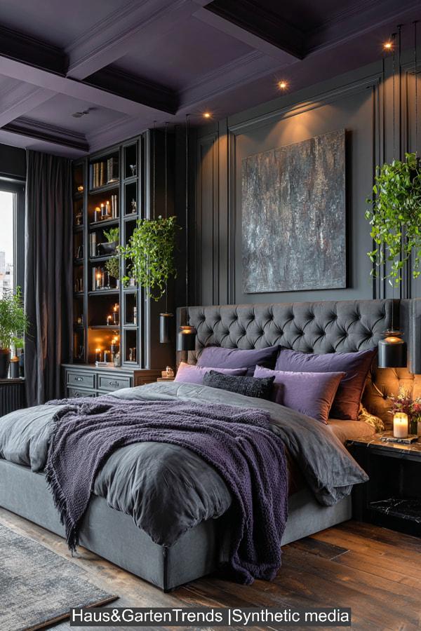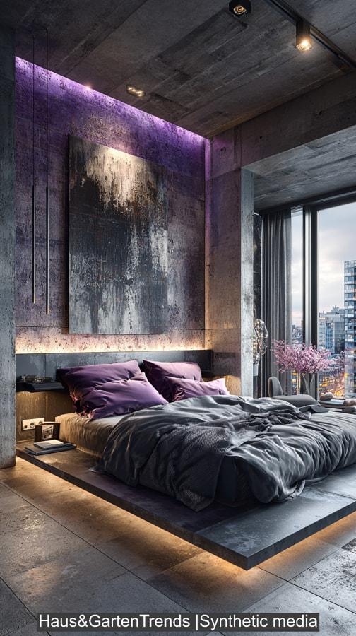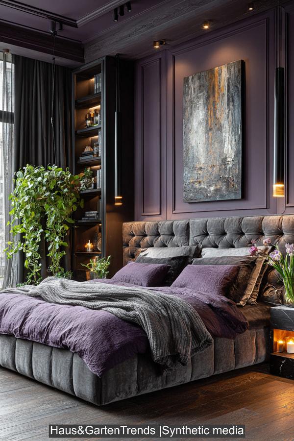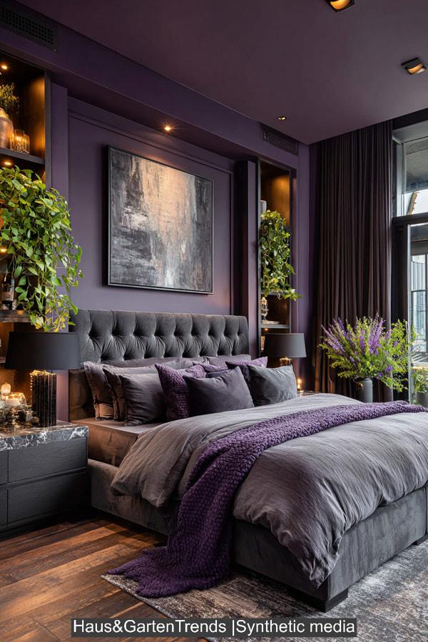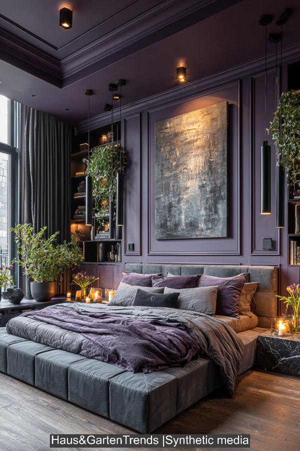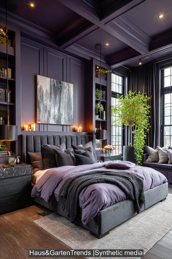 Dunkle Lilatöne wie Pflaume oder Aubergine verleihen dem Raum eine sinnliche, cocooningartige Geborgenheit, während helle Graunuancen das Gesamtbild auflockern und strukturieren. Je nach Licht verändert sich die Wirkung: tagsüber ruhig und edel, abends intensiv, fast dramatisch. Genau diese Wandelbarkeit macht den Reiz aus. Die Kombination eignet sich ideal für alle, die ein Schlafzimmer mit Tiefe und Charakter schaffen wollen – ruhig, stilvoll und mit einer subtilen, emotionalen Intensität, die lange nachwirkt.