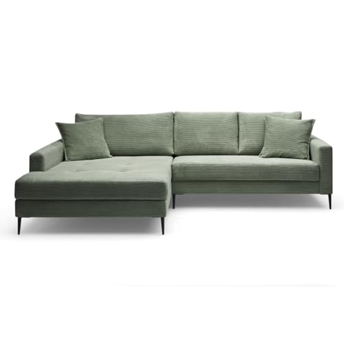 Liadomo Sofa Hilary Wintermoos, modernes Ecksofa, Cordbezug in Grün, Ottomane L //