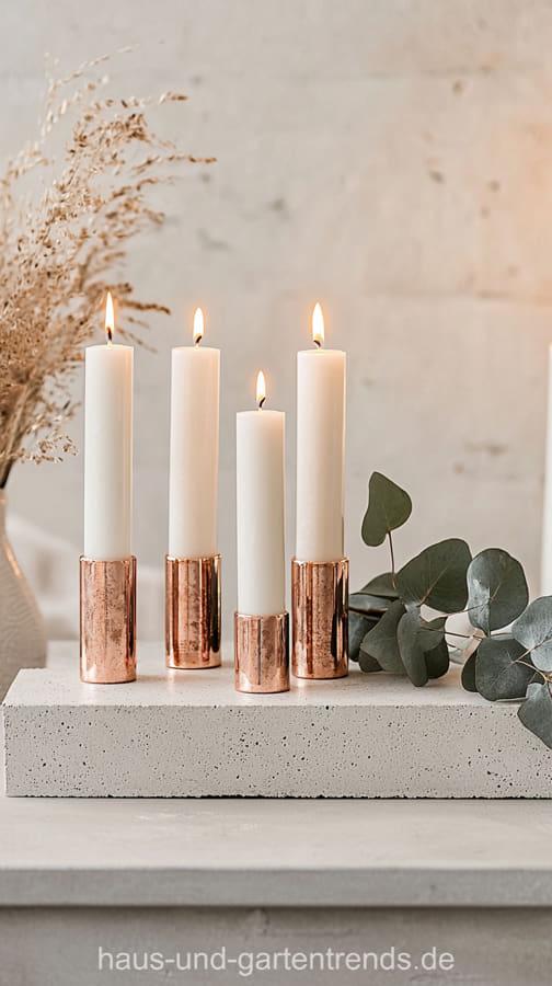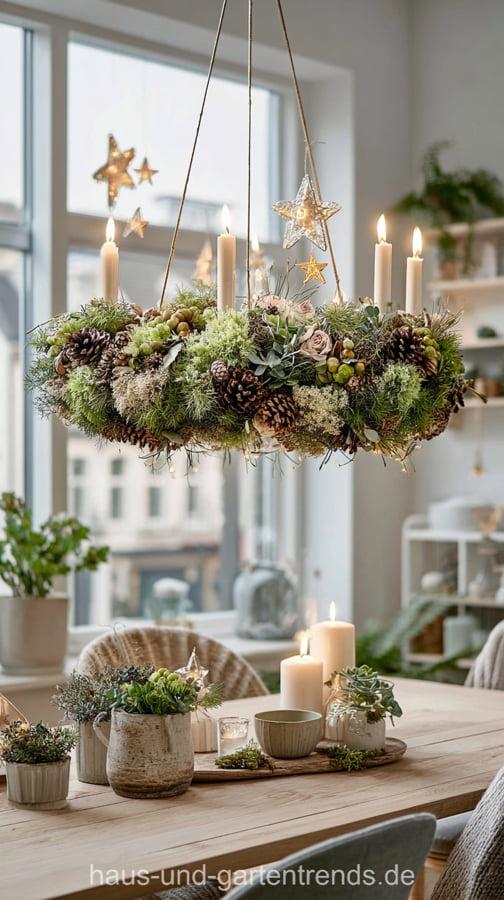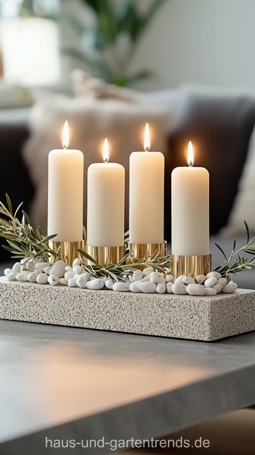 Du suchst nach Inspiration für einen modernen Adventskranz? Hier findest du kreative Ideen, die fernab vom klassischen kreisförmigen Tannengrün sind: Adventskränze auf Metallringen, Kerzen in klaren Glasgefäßen, auf Beton- oder Steinplatten, stilvolle Designs mit Eukalyptus, Trockenblumen und Naturmaterialien. Perfekt für alle, die es schlicht, elegant und zeitgemäß mögen. Ob Skandi-Stil oder edles Minimal-Design – diese Adventskranz-Ideen bringen festliche Stimmung in dein Zuhause und sind gleichzeitig echte Hingucker. 🎄✨