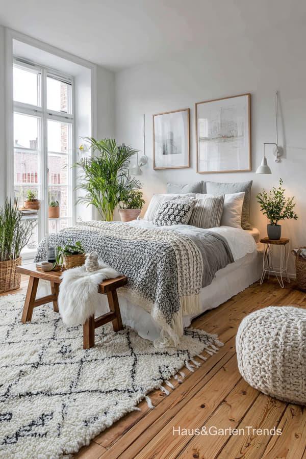 Diese 15+ Schlafzimmer Ideen im skandinavischen Stil vereinen zeitlose Eleganz, natürliche Materialien und eine beruhigende Farbwelt zu echten Wohlfühlräumen. Der Scandi Stil steht für klare Linien, helle Farben, sanfte Texturen und eine minimalistische Ästhetik, die gleichzeitig warm und einladend wirkt.