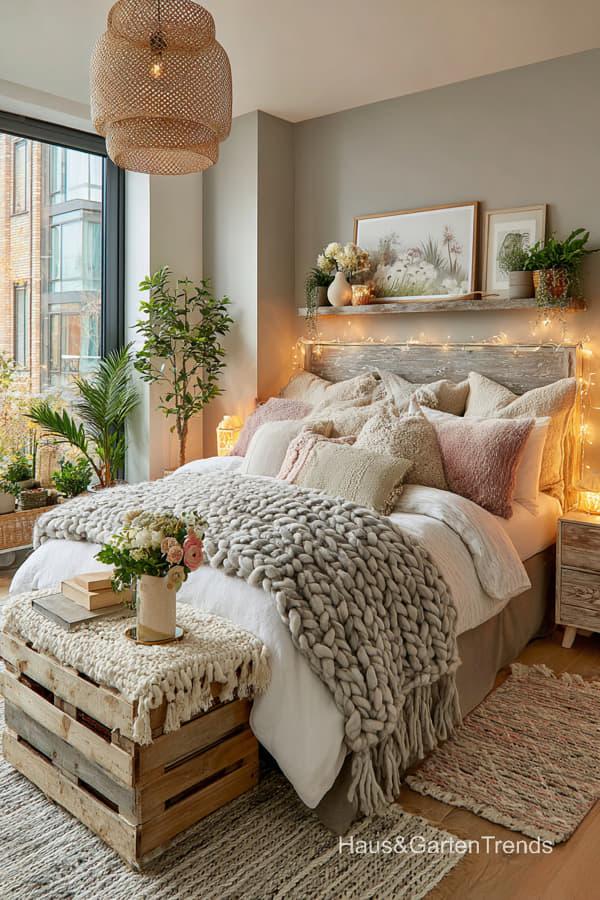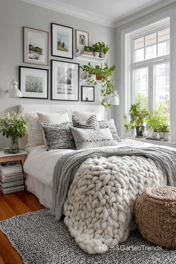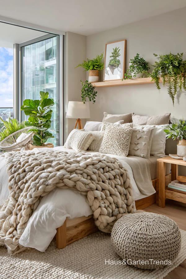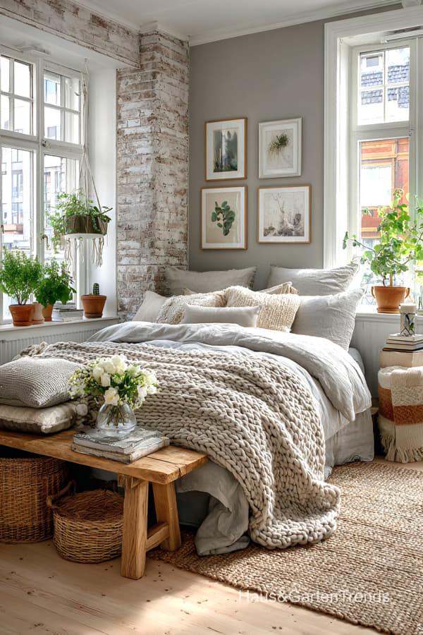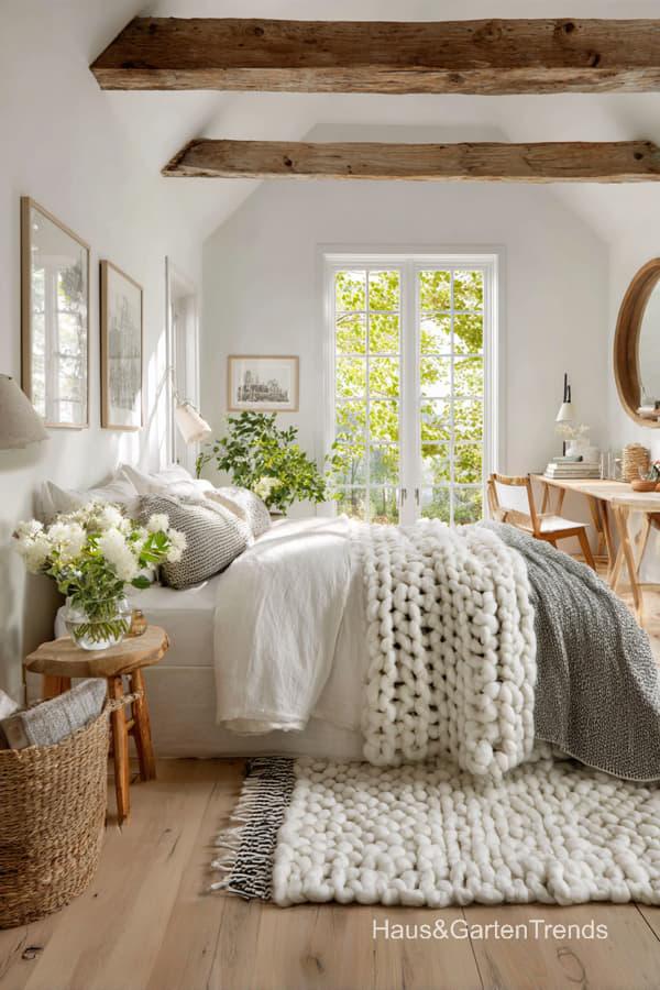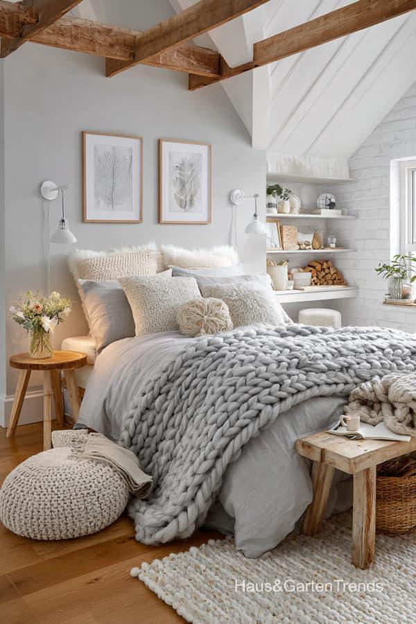 Ob holzbetonte Betten, weiche Leinenstoffe und gestrickte Decken, dezente Beige-, Weiß- und Grautöne oder gemütliche Lichtkonzepte – diese Schlafzimmer Designs schaffen eine entspannte, harmonische Atmosphäre, perfekt zum Abschalten und Auftanken. Lass dich inspirieren von Schlafzimmern, die Gelassenheit ausstrahlen und skandinavische Wohnkultur und nordische Gemütlichkeit perfekt widerspiegeln.