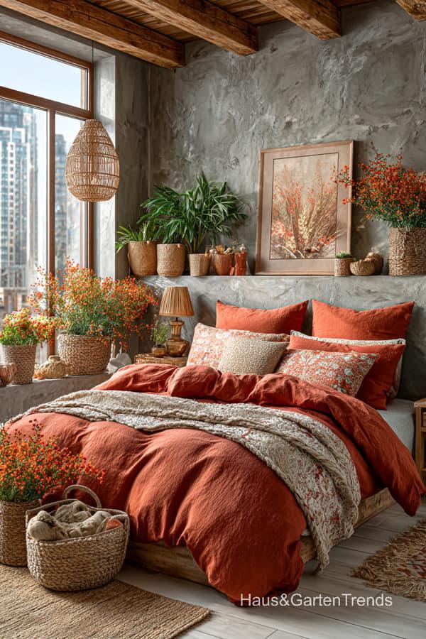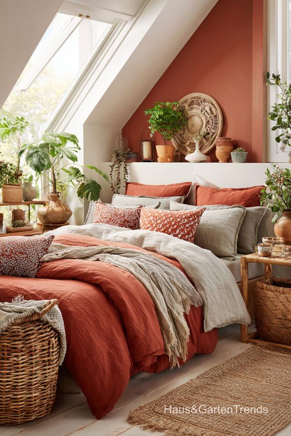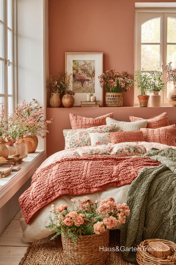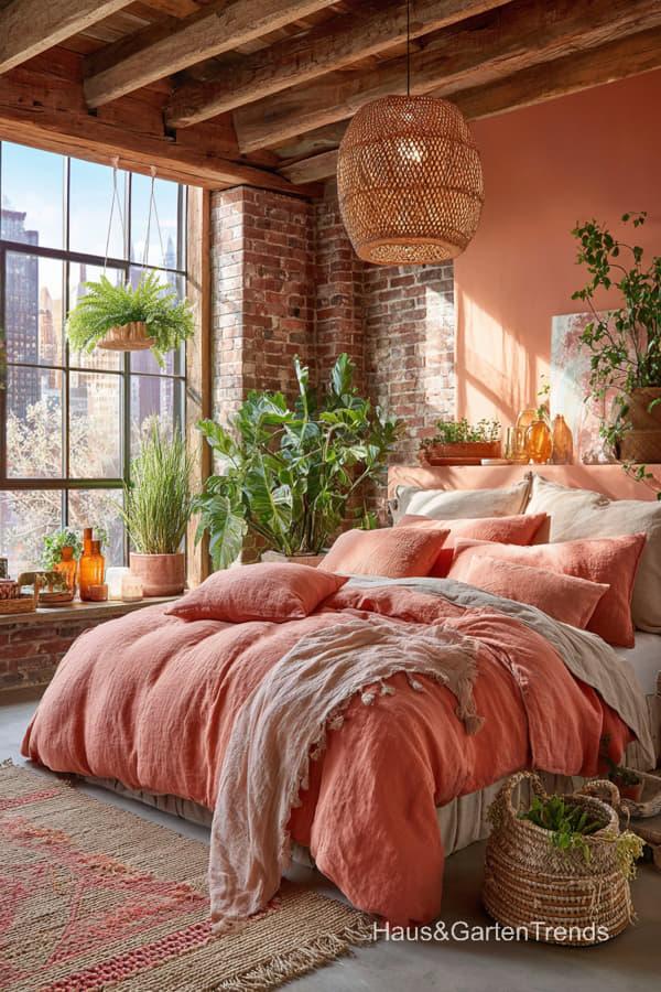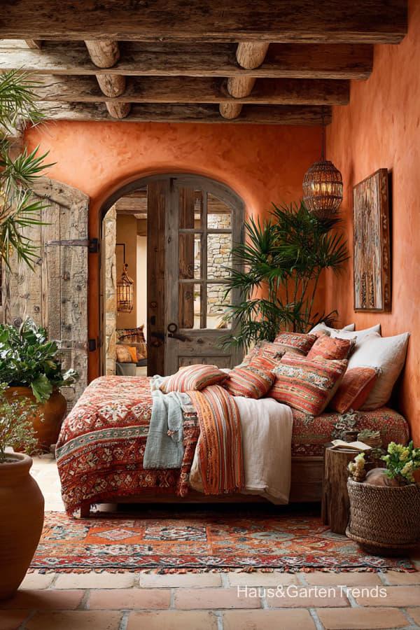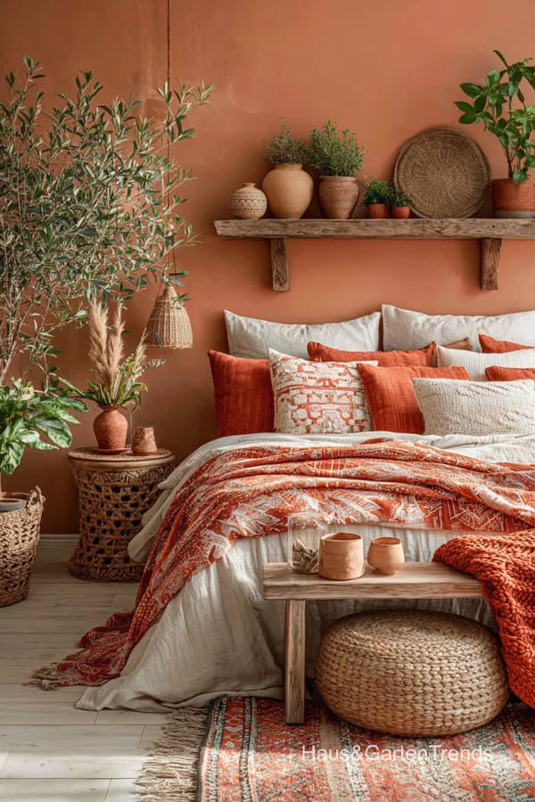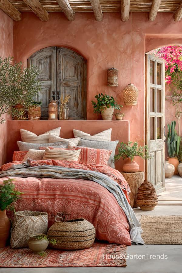 Entdecke 30+ inspirierende Schlafzimmer Ideen in Terracotta, die mediterrane Wärme, Geborgenheit und echtes Urlaubsflair ausstrahlen. Die erdige, sinnliche Wirkung dieser warmen Farbe – angesiedelt zwischen Rot, Orange und Braun und inspiriert von gebrannter Erde – schafft eine beruhigende, ausgleichende Atmosphäre, ideal für Rückzug und Entspannung. Ob modern-minimalistisch, boho, mediterran-elegant oder luxuriös und tiefgründig: Terracotta passt sich mühelos verschiedensten Einrichtungsstilen an und verleiht jedem Schlafzimmer Charakter und Tiefe.