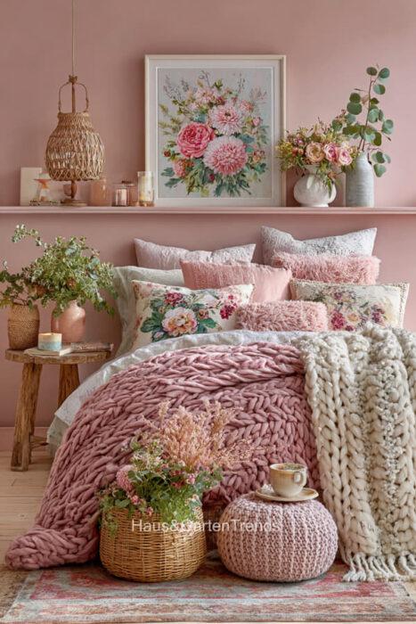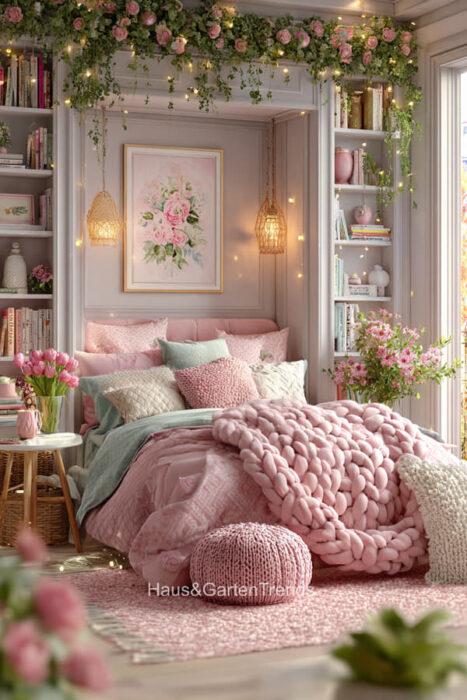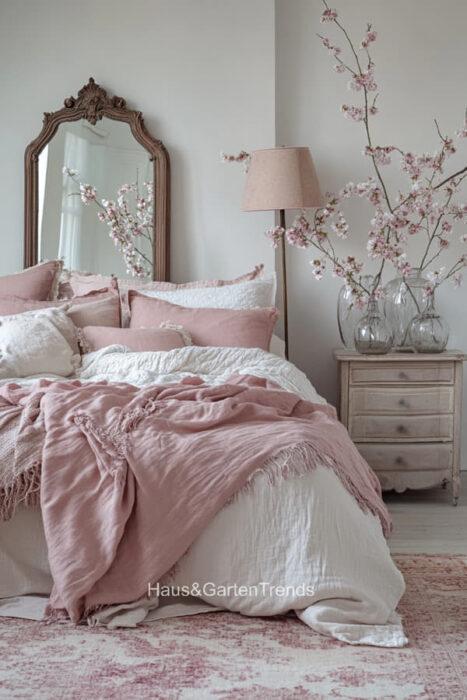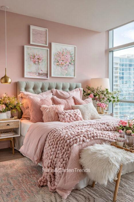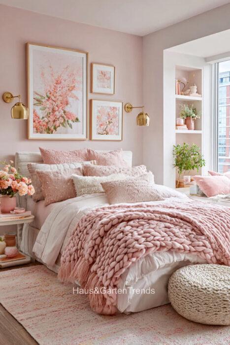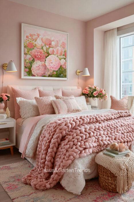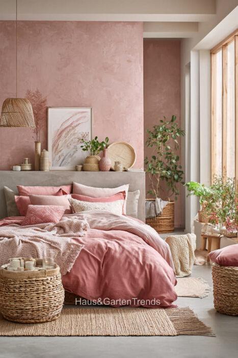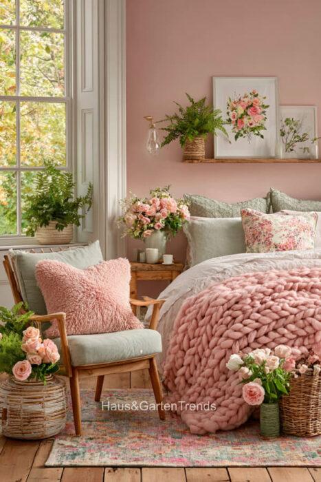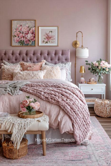 Zartes Rosa ist mehr als nur eine Farbe – es ist ein Gefühl, eine Stimmung, ein Statement für feminine Eleganz und wohltuende Geborgenheit. In einem Schlafzimmer in sanften Rosatönen verschmilzt Romantik mit Stilbewusstsein, während Samt, Lichtakzente und liebevoll ausgewählte Accessoires jedem Raum eine unverwechselbare Persönlichkeit verleihen. Ob verspielt, minimalistisch oder luxuriös – die richtigen Farbtöne, Texturen und Details verwandeln das Schlafzimmer in eine private Wohlfühloase, in der man den Alltag vergessen und die Seele baumeln lassen kann. Entdecke über 20 inspirierende Ideen für feminine Schlafzimmer, die durch zarte Rosa-Nuancen nicht nur verzaubern, sondern auch eine Atmosphäre voller Leichtigkeit, Wärme und Stil schaffen.
