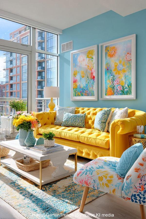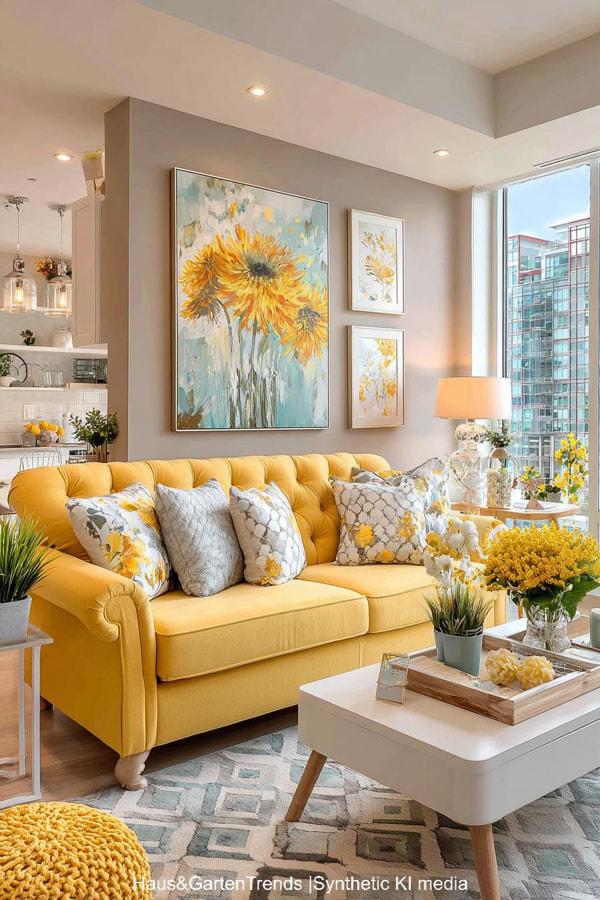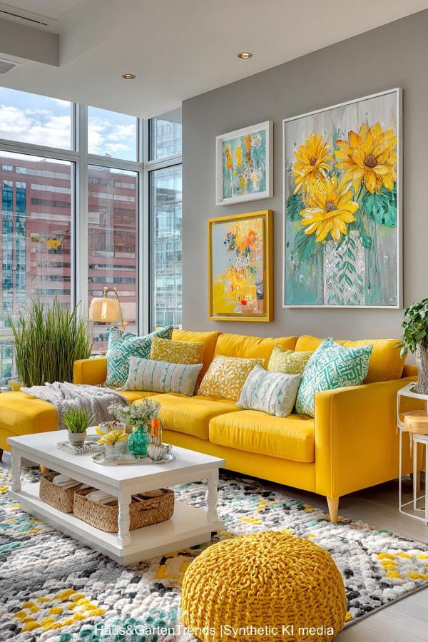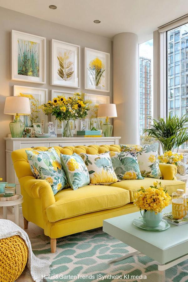 Mit welchen Farben lässt sich ein Sofa in Gelb am besten kombinieren?
