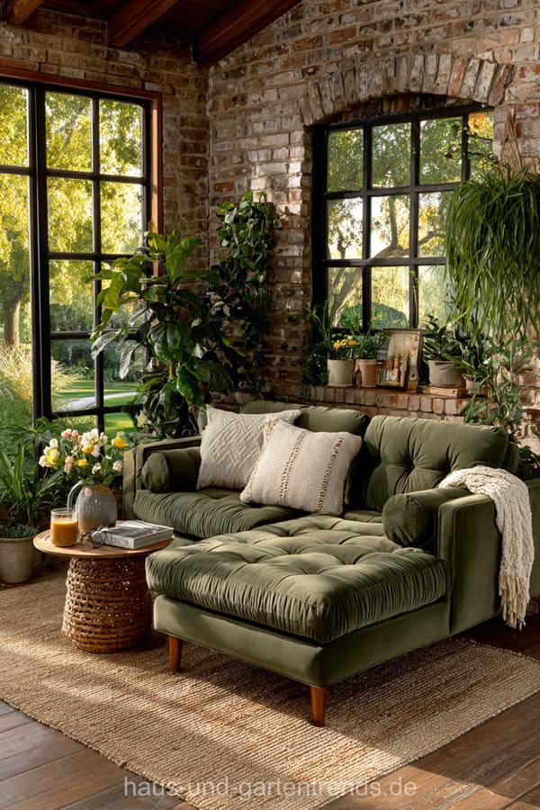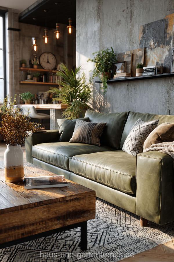 Zu welchen Einrichtungsstilen passt ein Sofa in Olivgrün und warum?