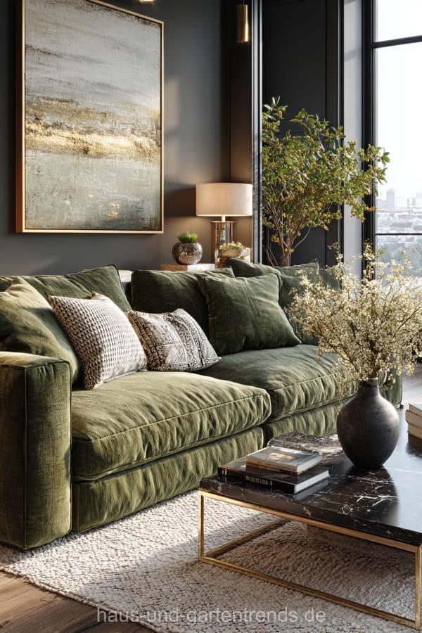 Wenn es darum geht, einen komfortablen und dennoch trendigen Wohnraum zu schaffen, ist ein Sofa im satten Olivgrün-Ton einer der besten Optionen.