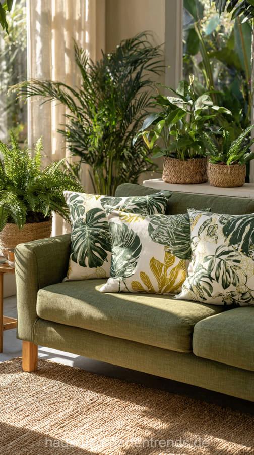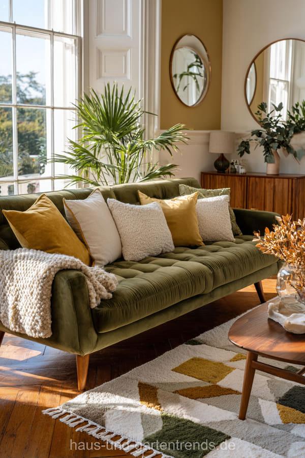 5 Tipps für die Wohnzimmereinrichtung, um ein Sofa in Olivgrün in Szene zu setzen