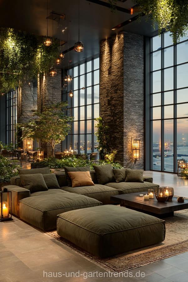 Dieser erdige Farbton ist eine beliebte Wahl für Sofas und Dekoration in modernen Wohnräumen, da er Zeitlosigkeit und Eleganz vermittelt. Ein olivfarbenes Sofa kann in einem Raum eine dramatische und transformative Wirkung auf das Gesamtgefühl und die Stimmung des Raums haben.