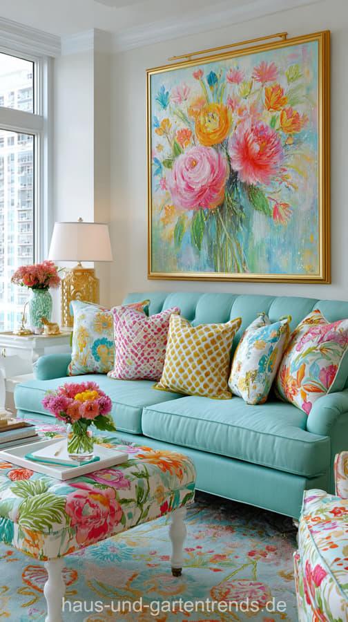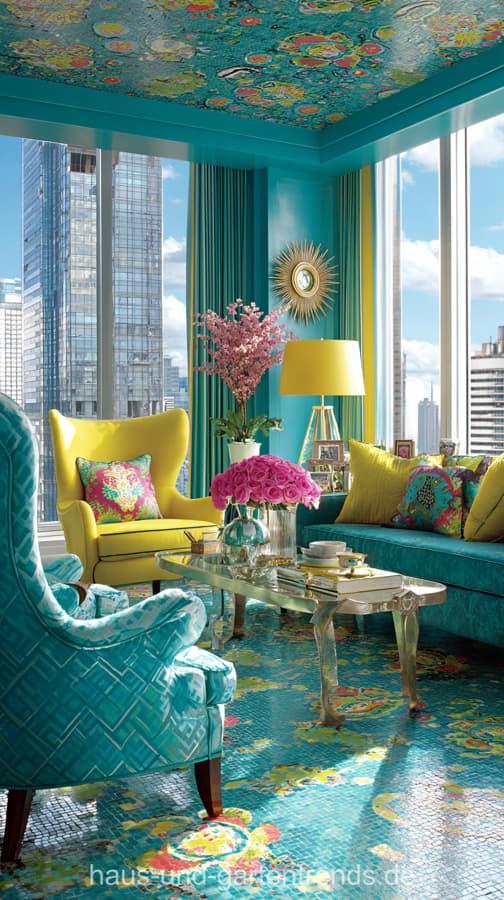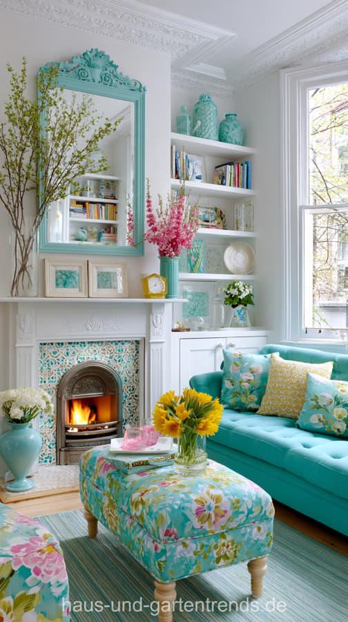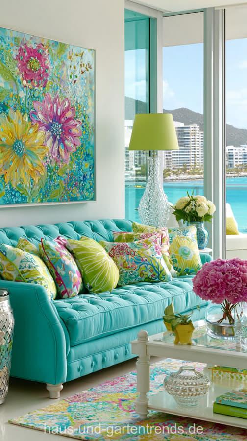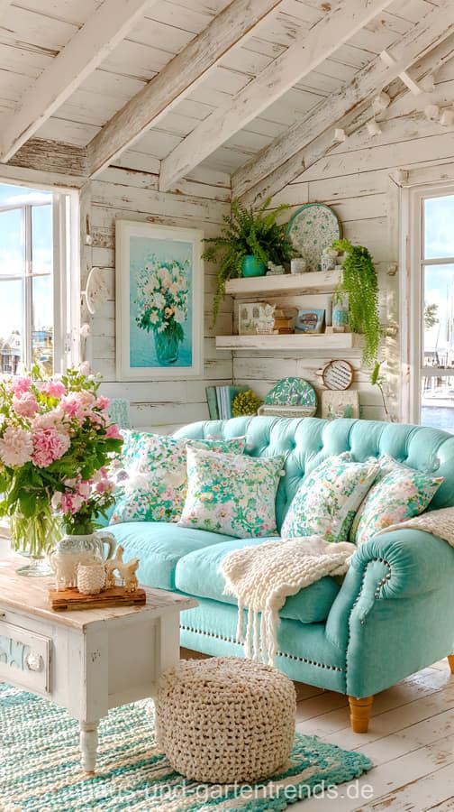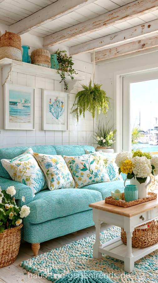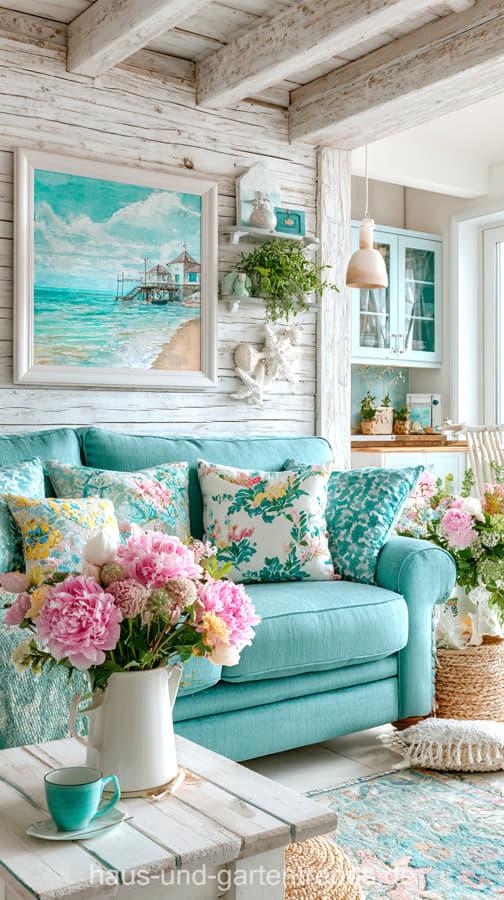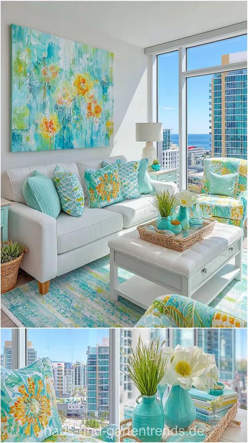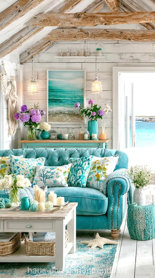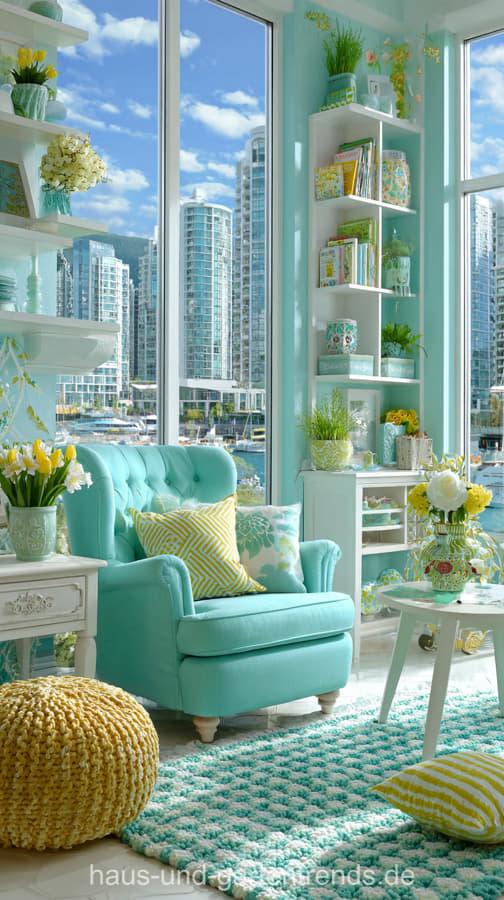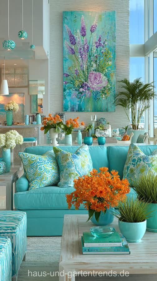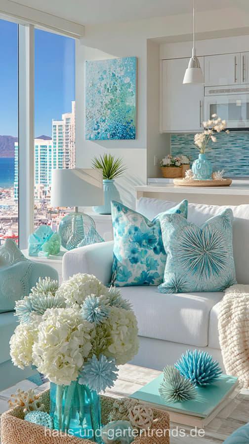 Wohnzimmerdeko in Türkis