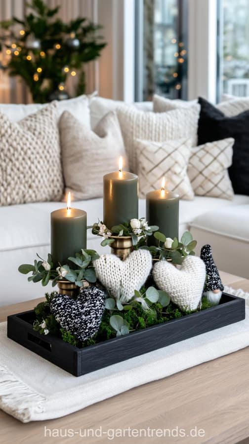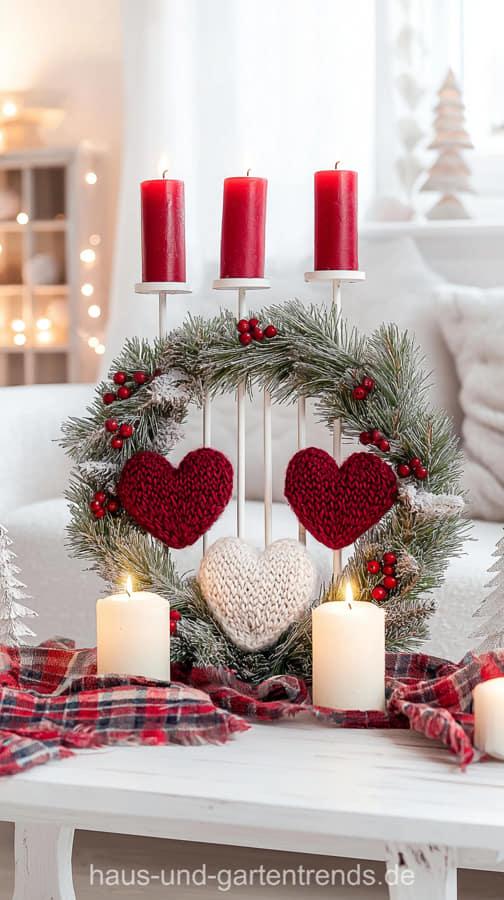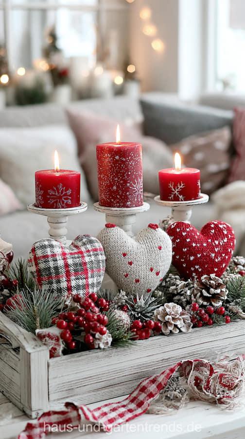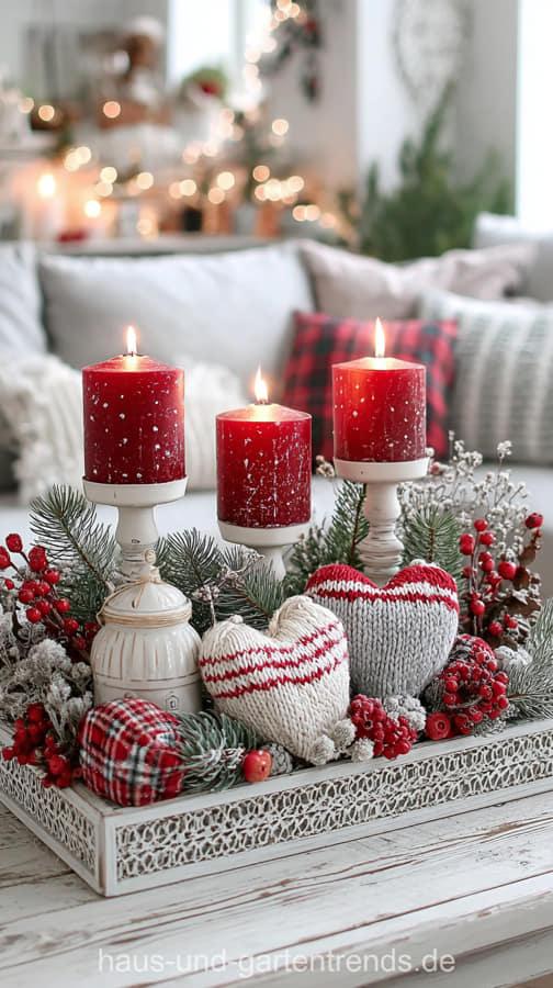 Verwandle dein Zuhause in eine Oase der Gemütlichkeit mit nachhaltiger Weihnachtsdeko im skandinavischen Stil. Inspiriert von Hygge, setzt dieser Stil auf natürliche Materialien wie Holz, Leinen, Wolle und Tannenzweige. Nutze eine Farbpalette aus Weiß, Beige, Grau, Rot und warmem Holz und integriere Kerzenlicht für besinnliche Abende. (Hinweis: Die gezeigten Bilder dienen nur als Inspiration und wurden mit KI erstellt. Hier werden keine Downloads oder Anleitungen angeboten – etwaige Links zu solchen stammen von externen Werbeseiten, die der Finanzierung dieser Website dienen.)