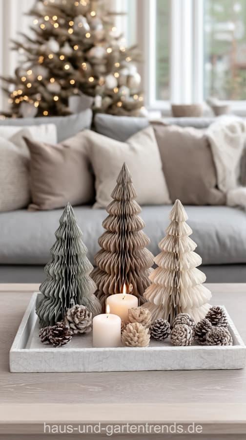 Mach’s dir hyggelig! Gestalte deinen Couchtisch mit natürlichen Materialien wie Holz, Eukalyptus, Tannengrün und schlichten Kerzen – für ein stilvolles, ruhiges Winterambiente. Dieser Look ist perfekt, wenn du den skandinavischen Stil liebst und dein Wohnzimmer modern und gemütlich zugleich gestalten willst.